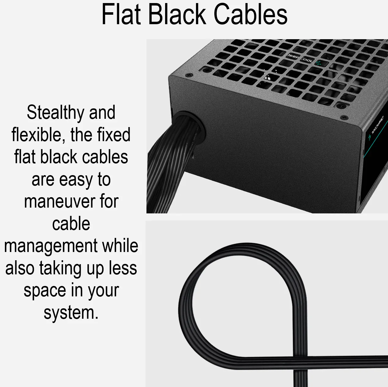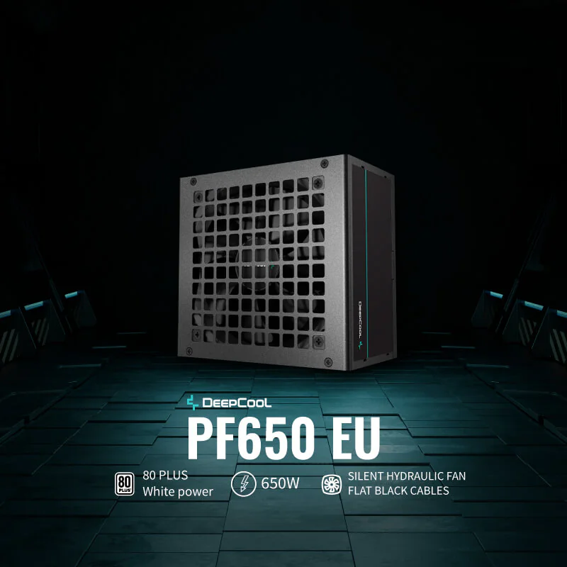DeepCool PF650 ATX V2.4 650W PSU With 80 PLUS 230V EU Efficiency, Dual EPS, Silent 120mm Fan, Flat Black Cables, OPP/OVP/SCP Protections & 100K MTBF | BLACK