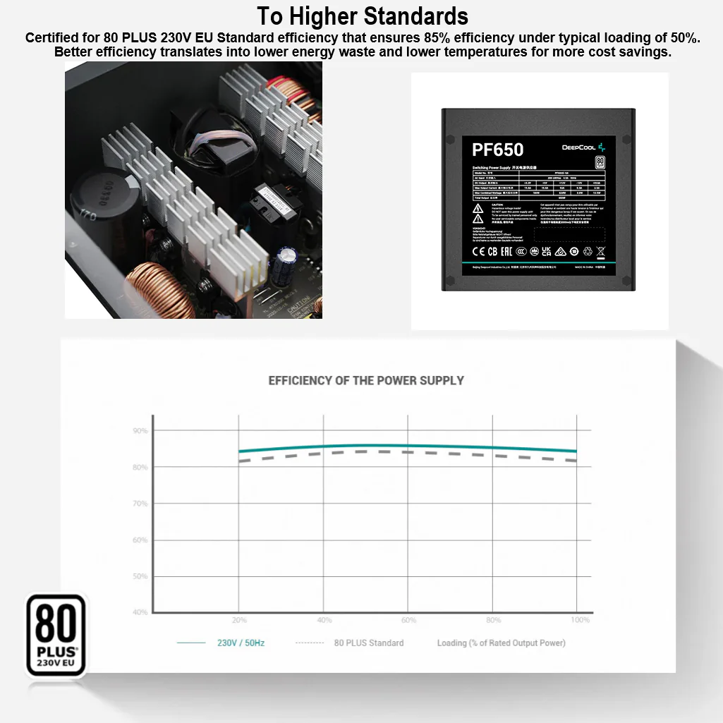 - Solid Efficiency at a Smarter Price : Certified for 80 PLUS 230V EU Standard, the PF650 delivers up to 85% efficiency under typical 50% loads—perfect for budget-conscious builders who don’t want to compromise on power quality.