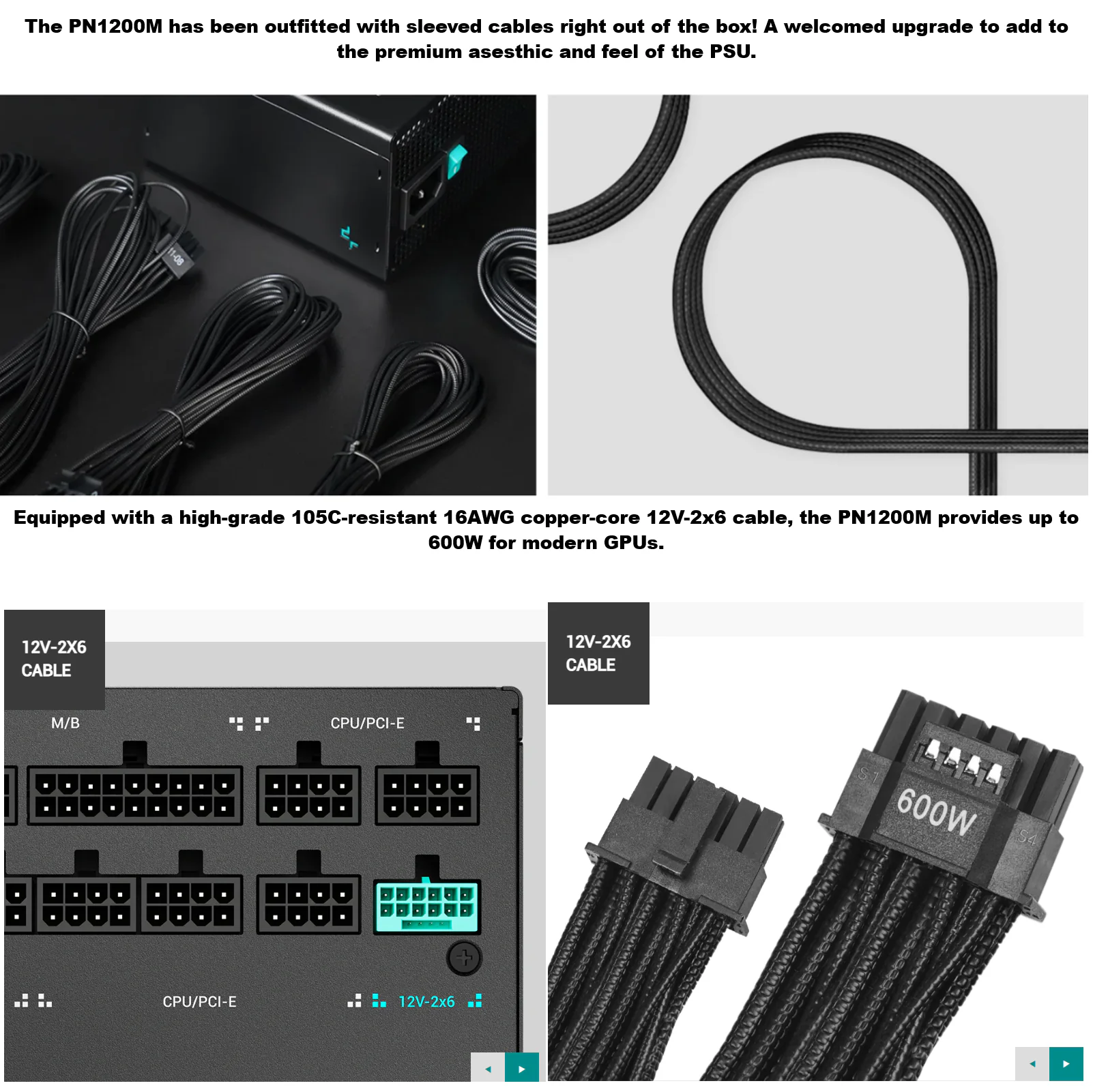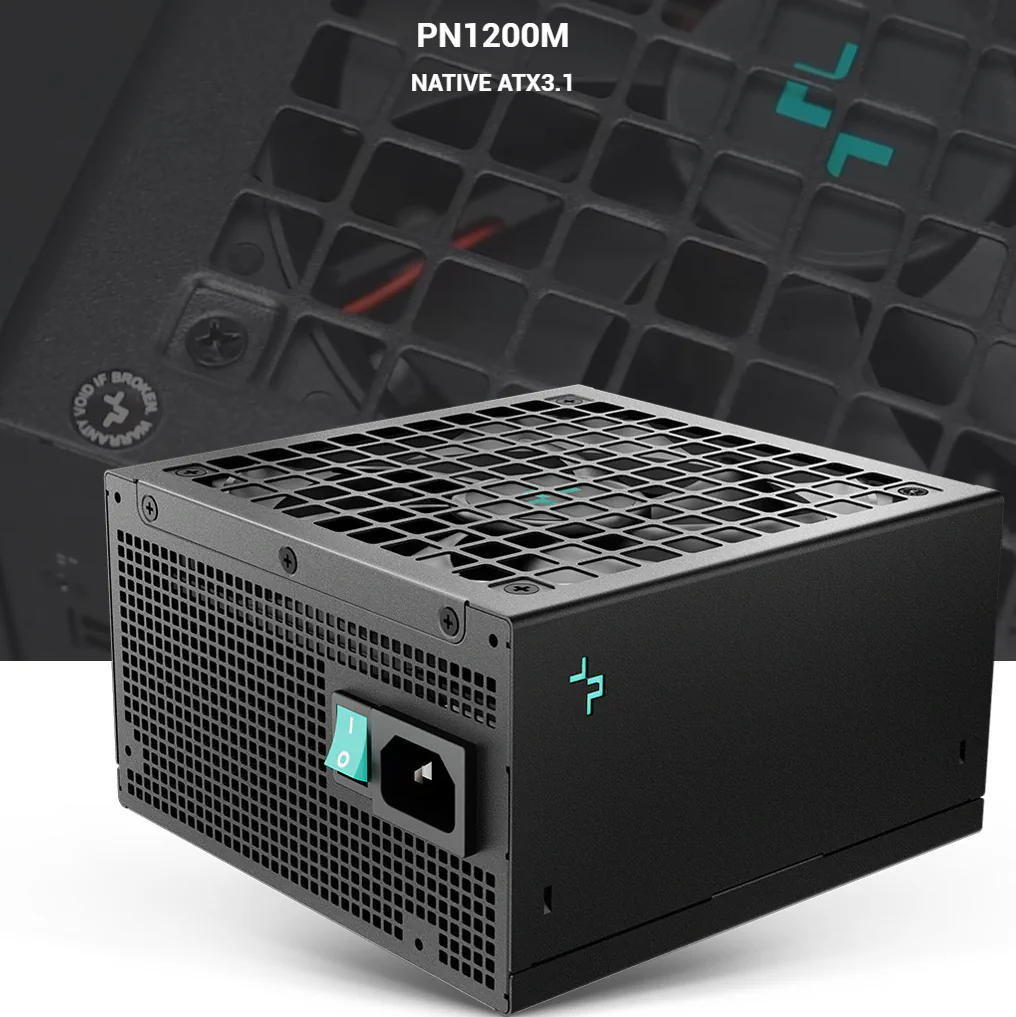 DeepCool PN1200M ATX 3.1 1200W Power Supply, 80 Plus Gold, Cybernetics Gold PCIe 5.1 12V-2×6 Cable, Fully Sleeved Cables, 135mm FDB Fan, Japanese Capacitor | BLACK