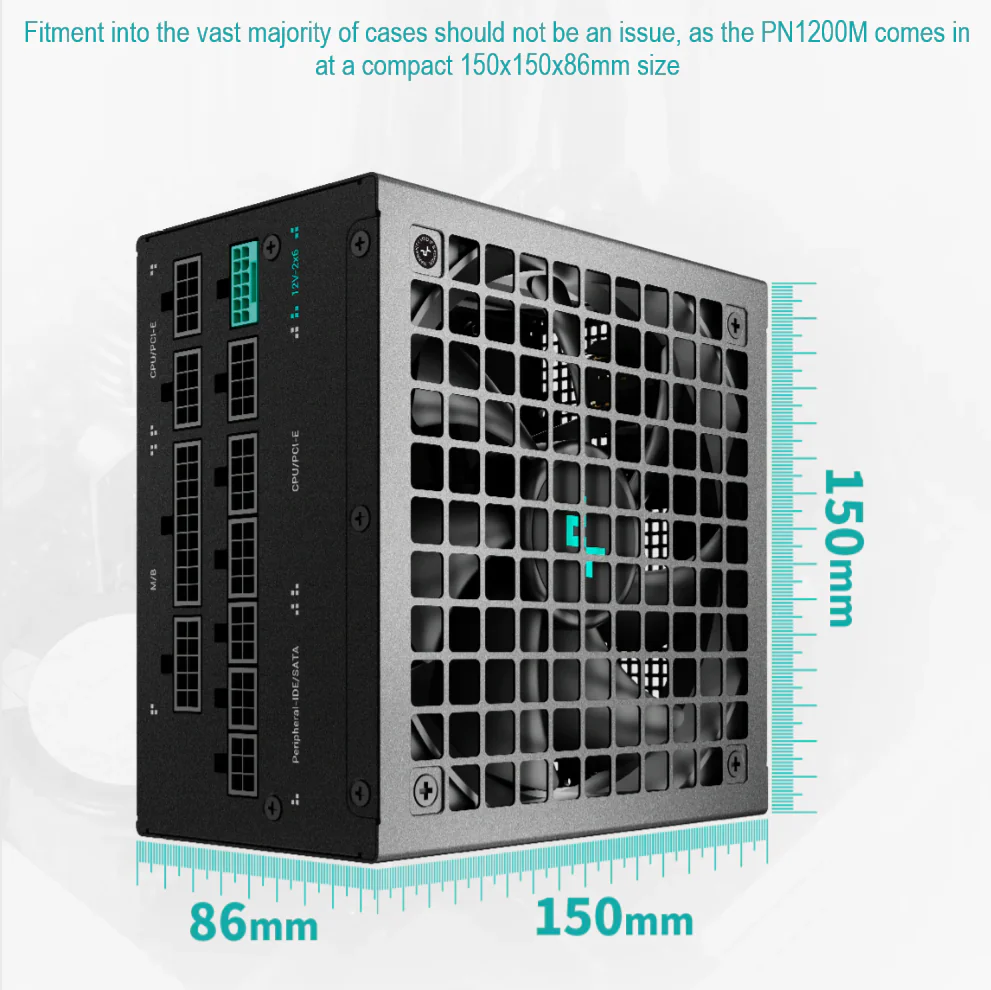 DeepCool PN1200M ATX 3.1 1200W Power Supply, 80 Plus Gold, Cybernetics Gold PCIe 5.1 12V-2×6 Cable, Fully Sleeved Cables, 135mm FDB Fan, Japanese Capacitor | BLACK