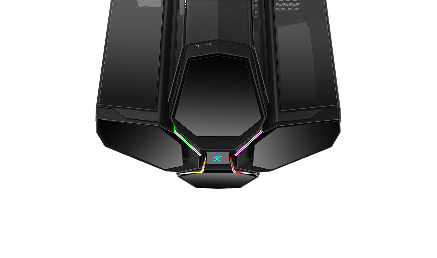 DEEPCOOL QUADSTELLAR INFINITY gaming PC case unique spaceship designed carries four vent front panels .
