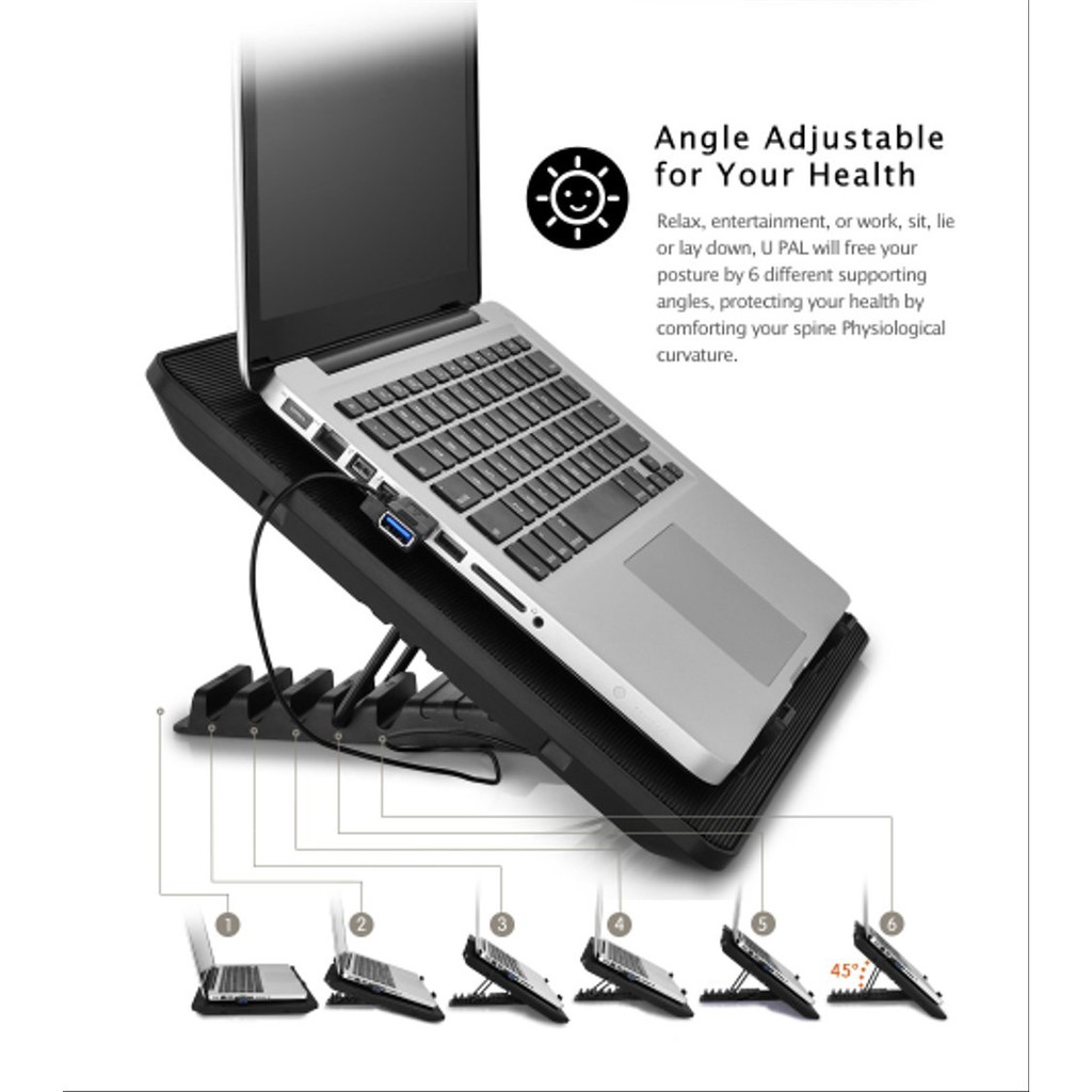 Deepcool U-PAL U Shape Design Laptop Cooler, Up to 15.6, Two 14cm fans, USB 3.0 Pass-through, Angel adjustable