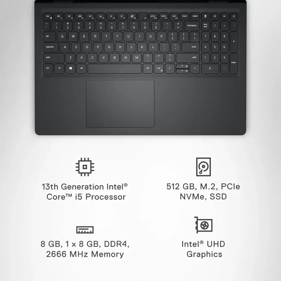 Dell Inspiron 15 3530 Intel Core i5-1334U | 8GB DDR4 RAM ; 512GB NVMe SSD | Intel UHD Graphics | 15.6″ Full HD IPS TouchScreen | Windows 11 Home in S Mode | BLACK