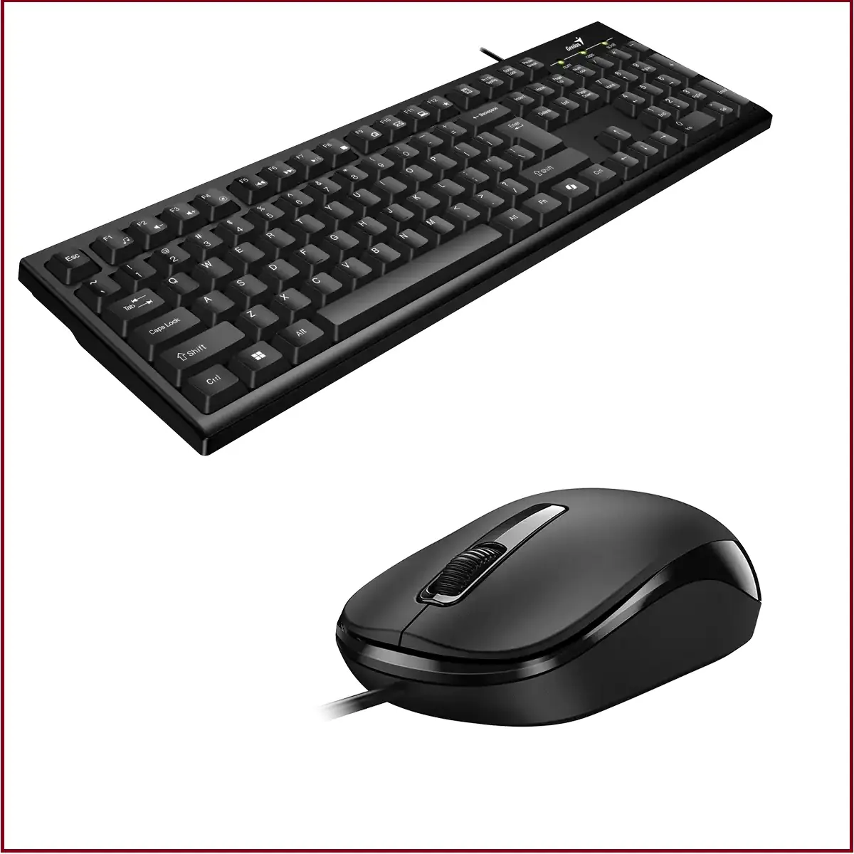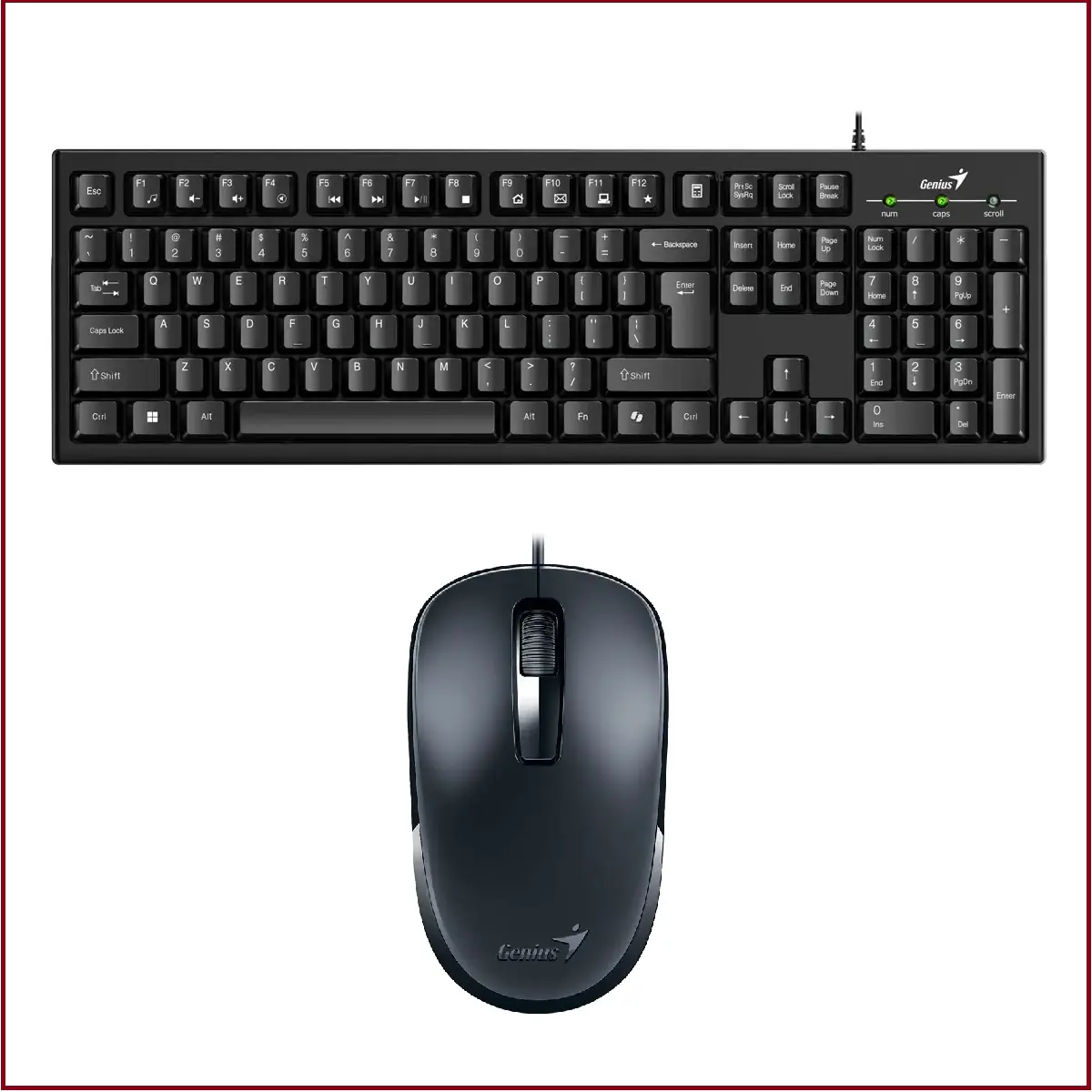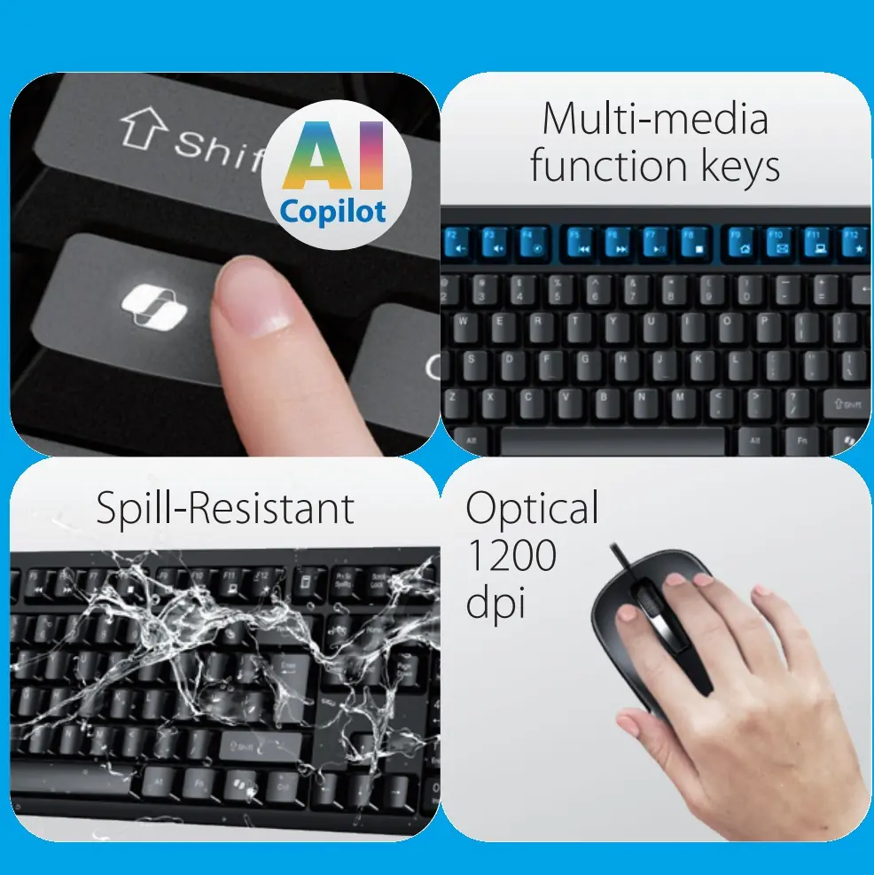 GENUIS AI Copilot Key Multimedia Wired Keyboard & High-Resolution Optical USB Mouse Combo with 12 Function Keys, Spill-Resistant Design, 1200 DPI Sensor, Plug & Play for Windows & Mac , ENGLISH/ARABIC| BLACK KM-100SE