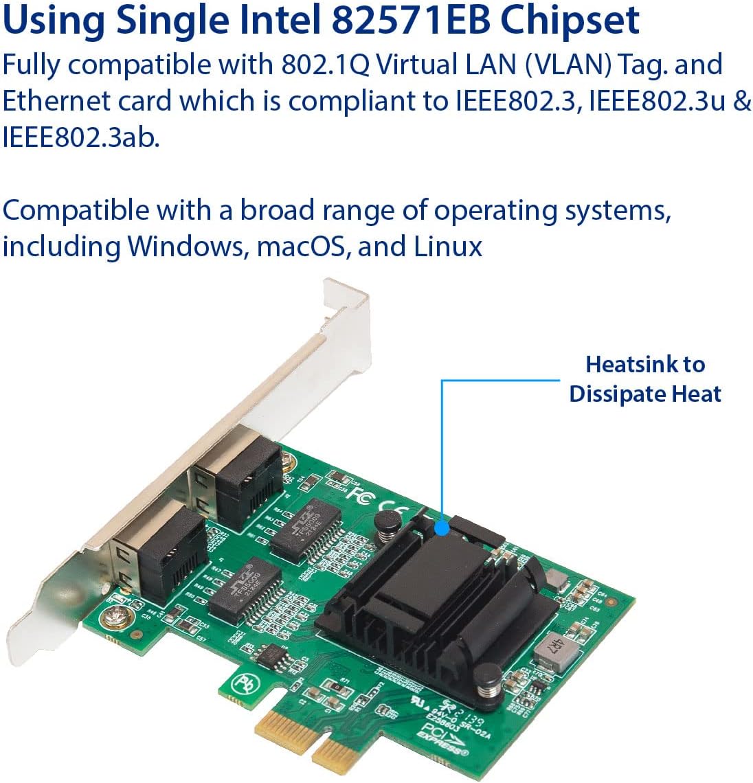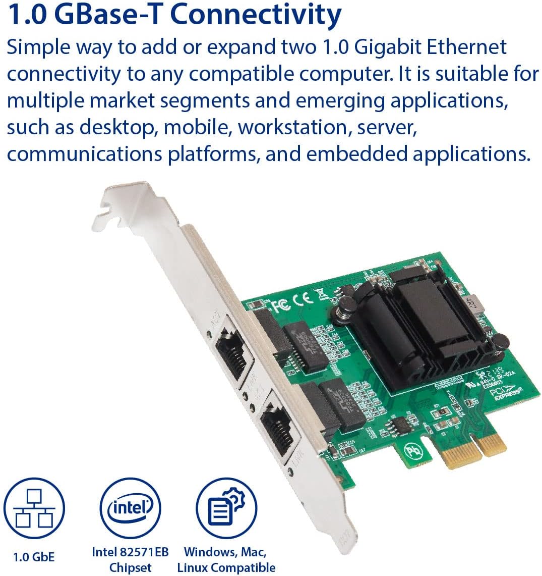 Dual Port Gigabit Ethernet PCIE Card, 10/100/1000 Mbps PCI Express Network Adapter RJ45 LAN Network Card Ethernet Card 82751EB for Win7/8/x/10 for Linux , Windows Server