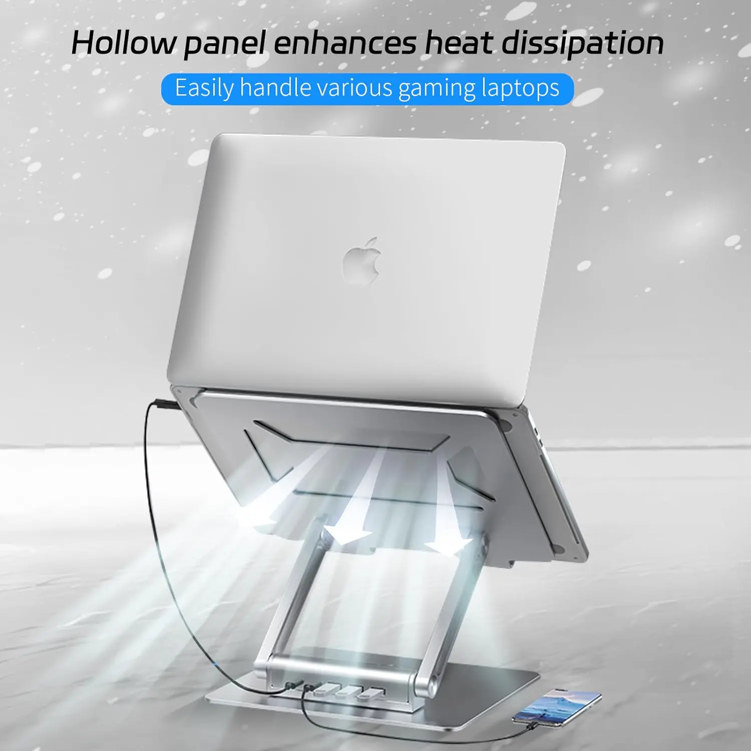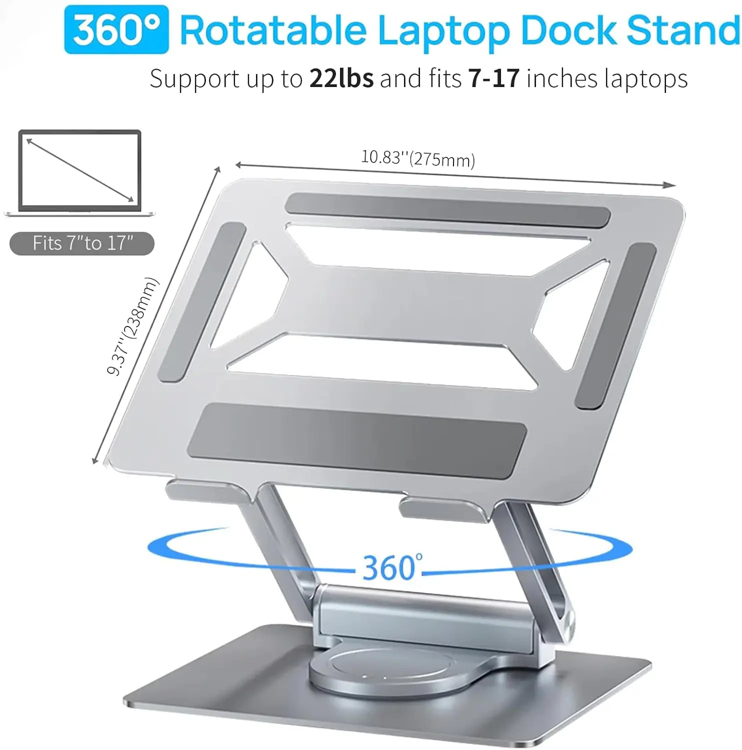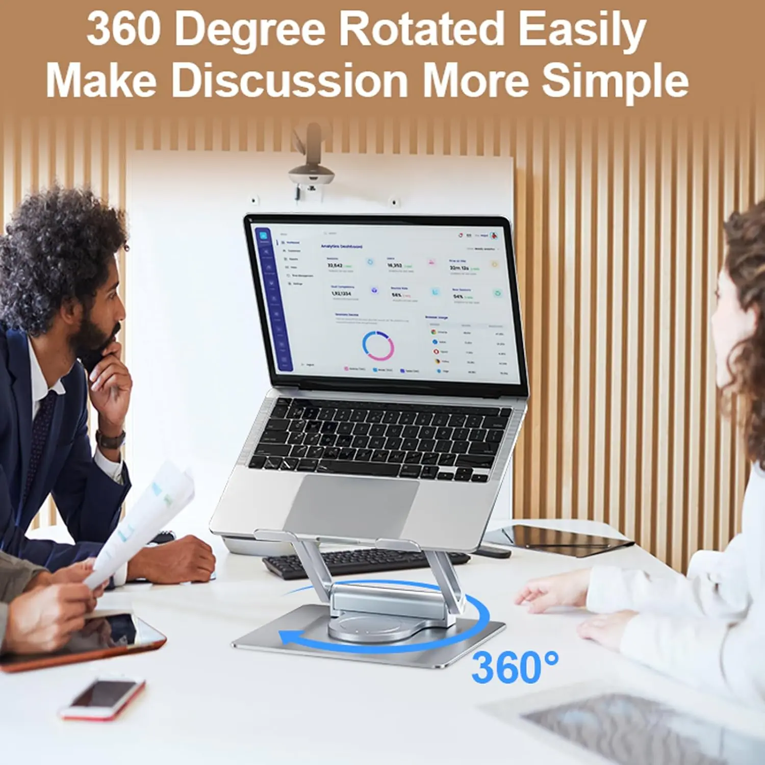 E13SU Aluminum Laptop Stand – 360° Rotatable, Adjustable Height/Angle, 3×USB3.0 + 1×Type-C Hub, Fits 7″-17″, Vision Correction, Silver, 1.89kg