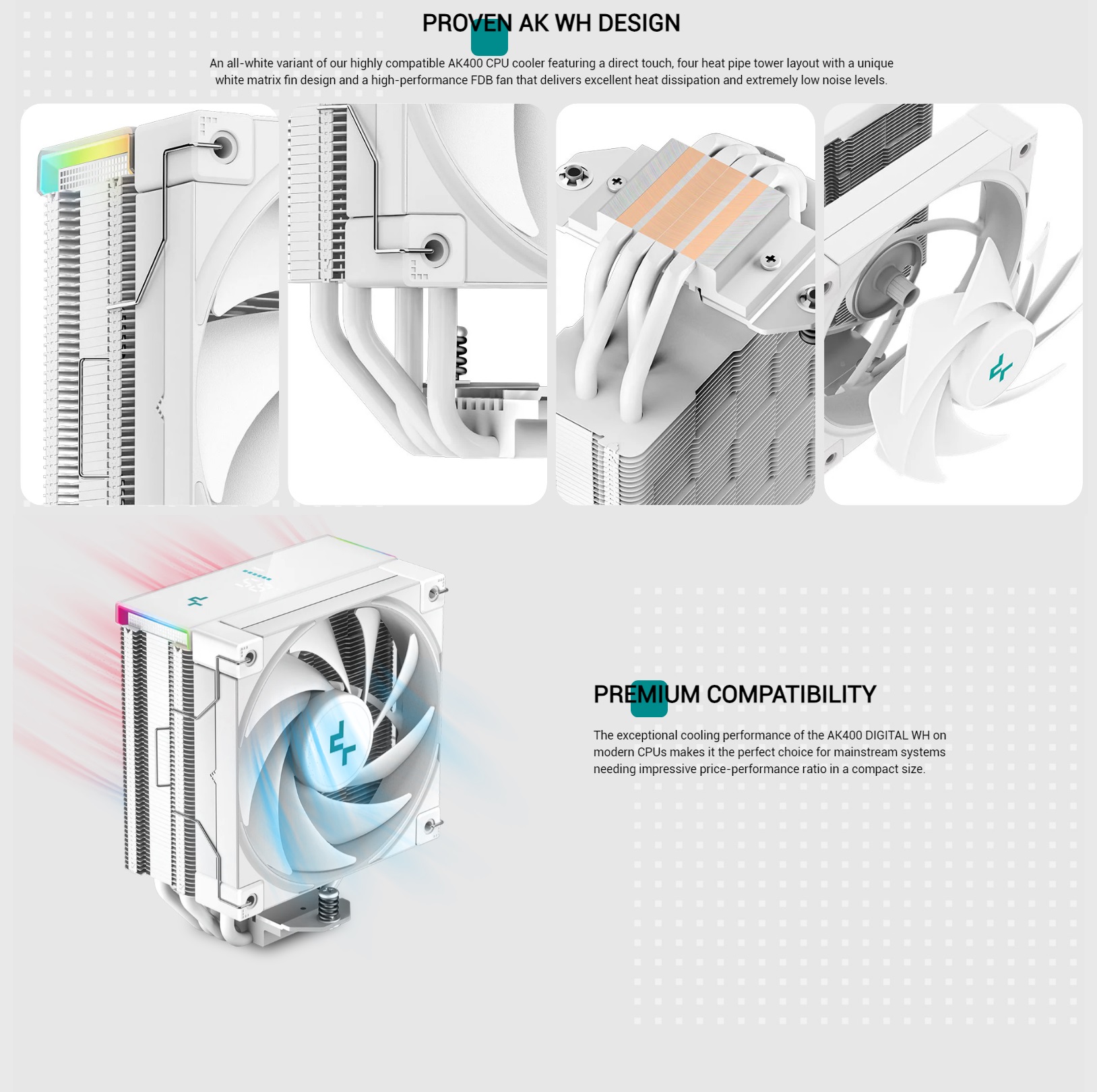 - Battle-Tested AK WH Design: This all-white beast features four direct-touch heat pipes and a sleek matrix fin design. Optimized for maximum compatibility, it delivers premium heat dissipation while looking crisp and clean in your setup.