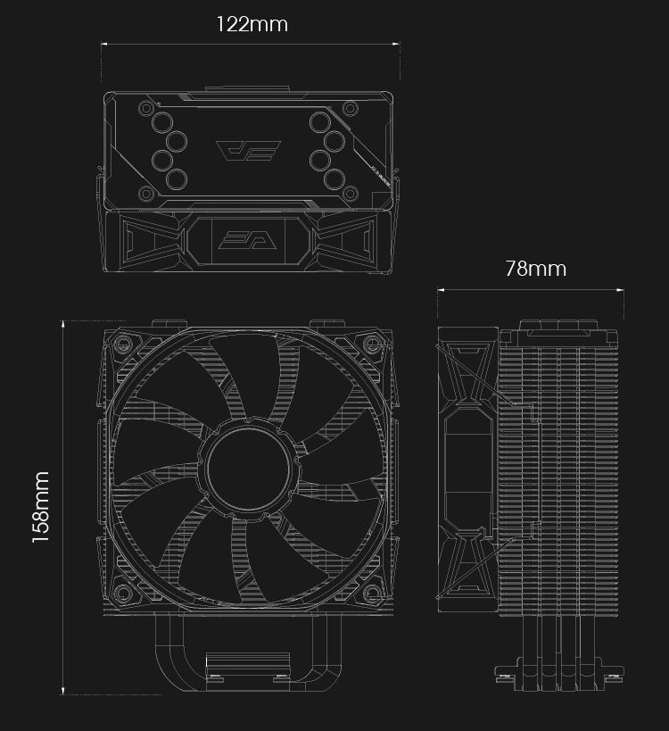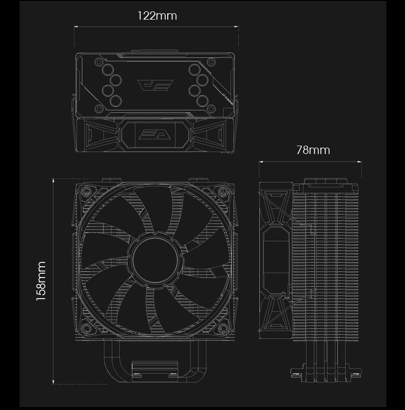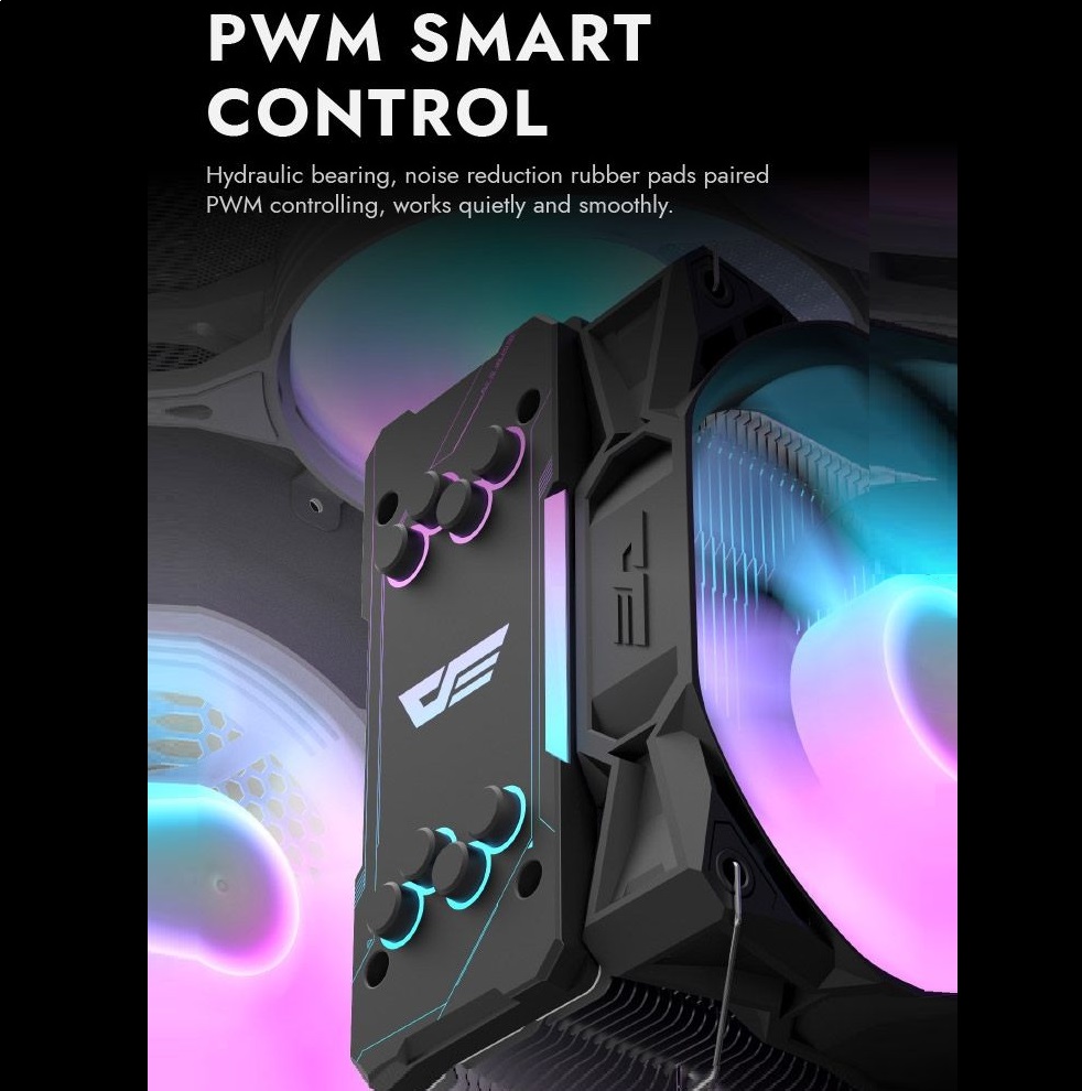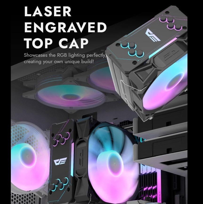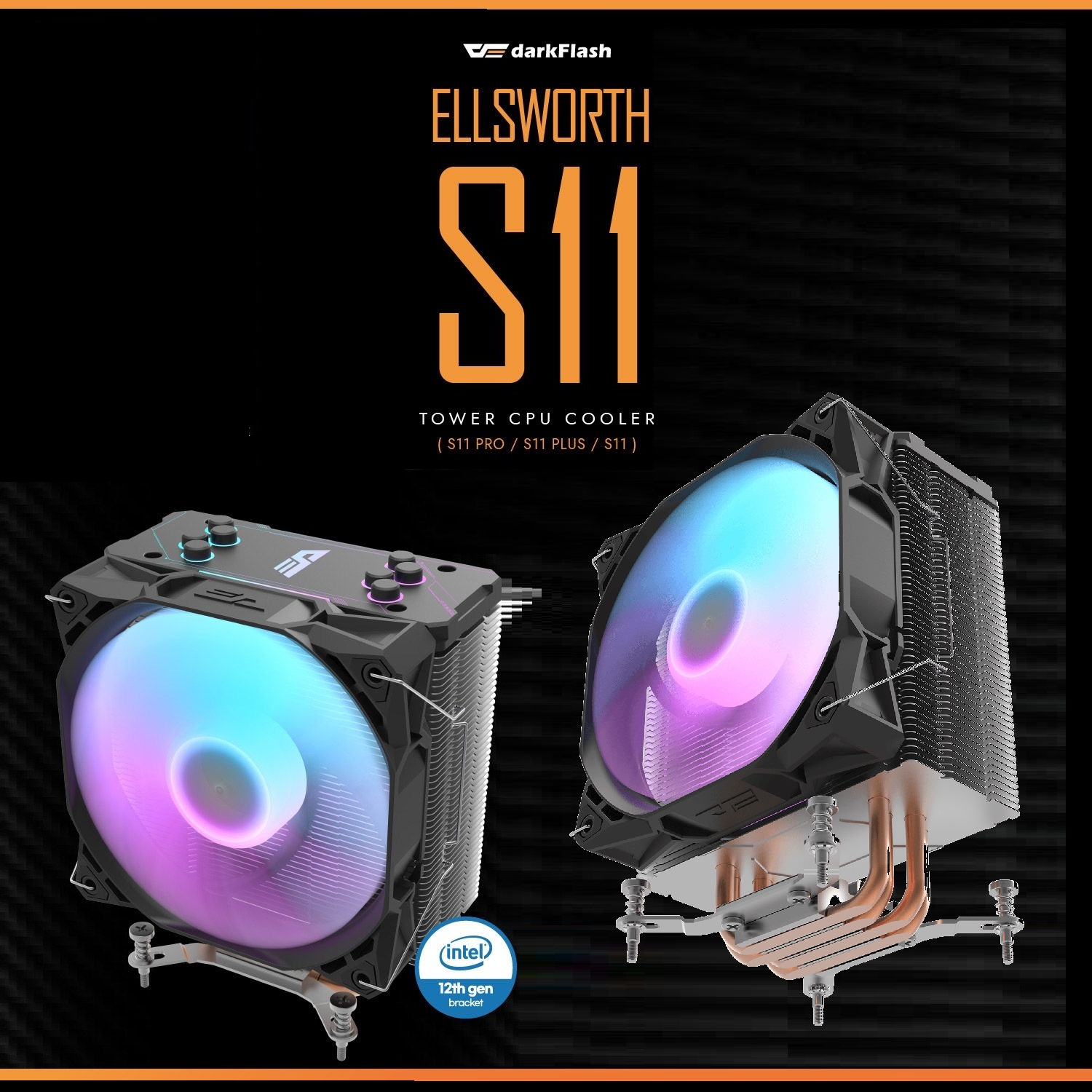 - darkFlash Ellsworth S11 Air CPU Cooler Compatible with most motherboards, top cap and fans run on 5V A-RGB signal.