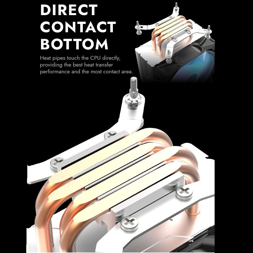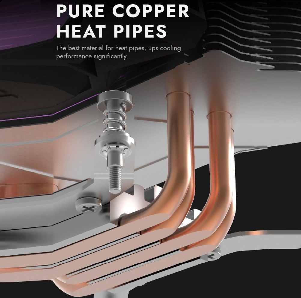 - Heat pipes contact the CPU directly for better heat dissipation.