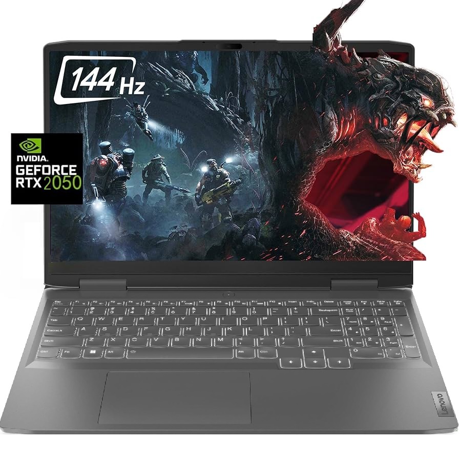 Lenovo LOQ 15IAX9 Intel® Core™ i5-12450HX | 16GB DDR5 RAM ; 512GB SSD | RTX™ 2050 4GB | 15.6″ FHD IPS Display 144Hz | White Backlit English Arabic Keyboard | DOS | with LOQ M100 RGB Mouse | Luna Grey