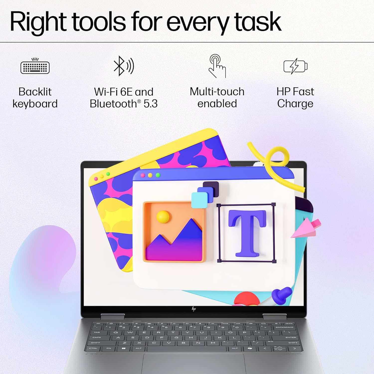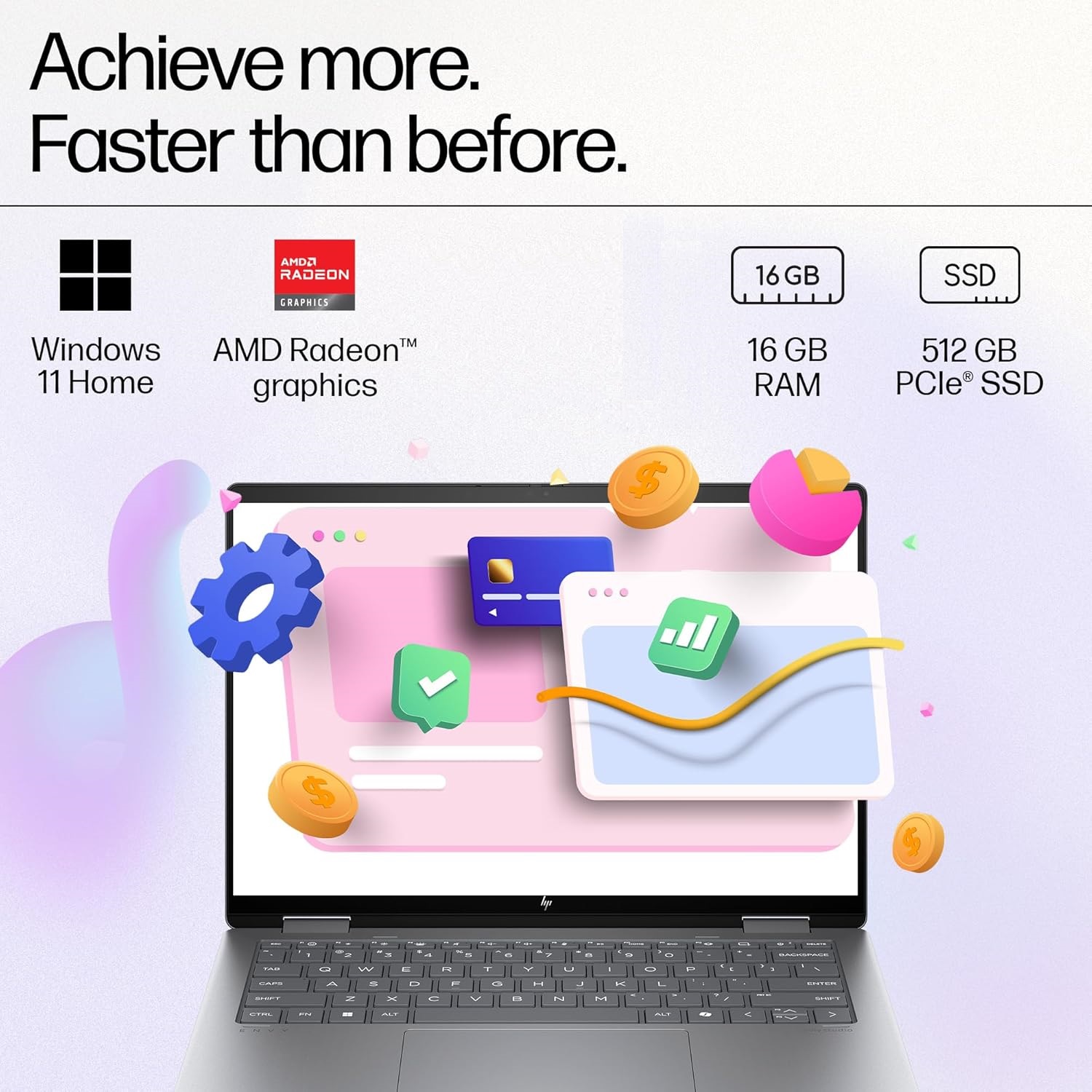 HP ENVY x360 2-in-1 Laptop 14-fa0013dx AMD Ryzen™ 5 8640HS | 16GB DDR5 RAM ; 512Gb NVMe | AMD Radeon Graphics | TouchScreen 14-inch WUXGA IPS Display | Backlit Keyboard | Windows 11 Home | Glacier Silver