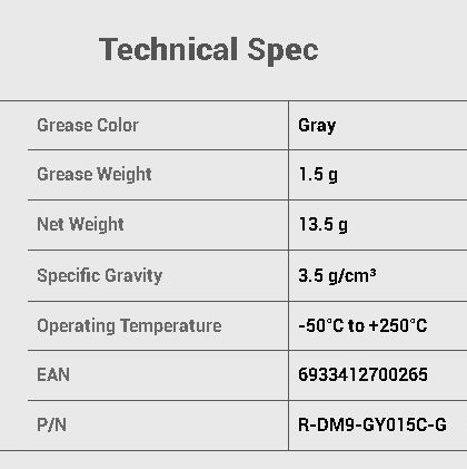 Deepcool DM9 Silicone Resin Based Thermal Paste ; Ultra-stable within -50°C to +250°C ; Professional-Grade Low Thermal Resistance & High Thermal Conductivity ; 1.5g Grease Weight | GREY
