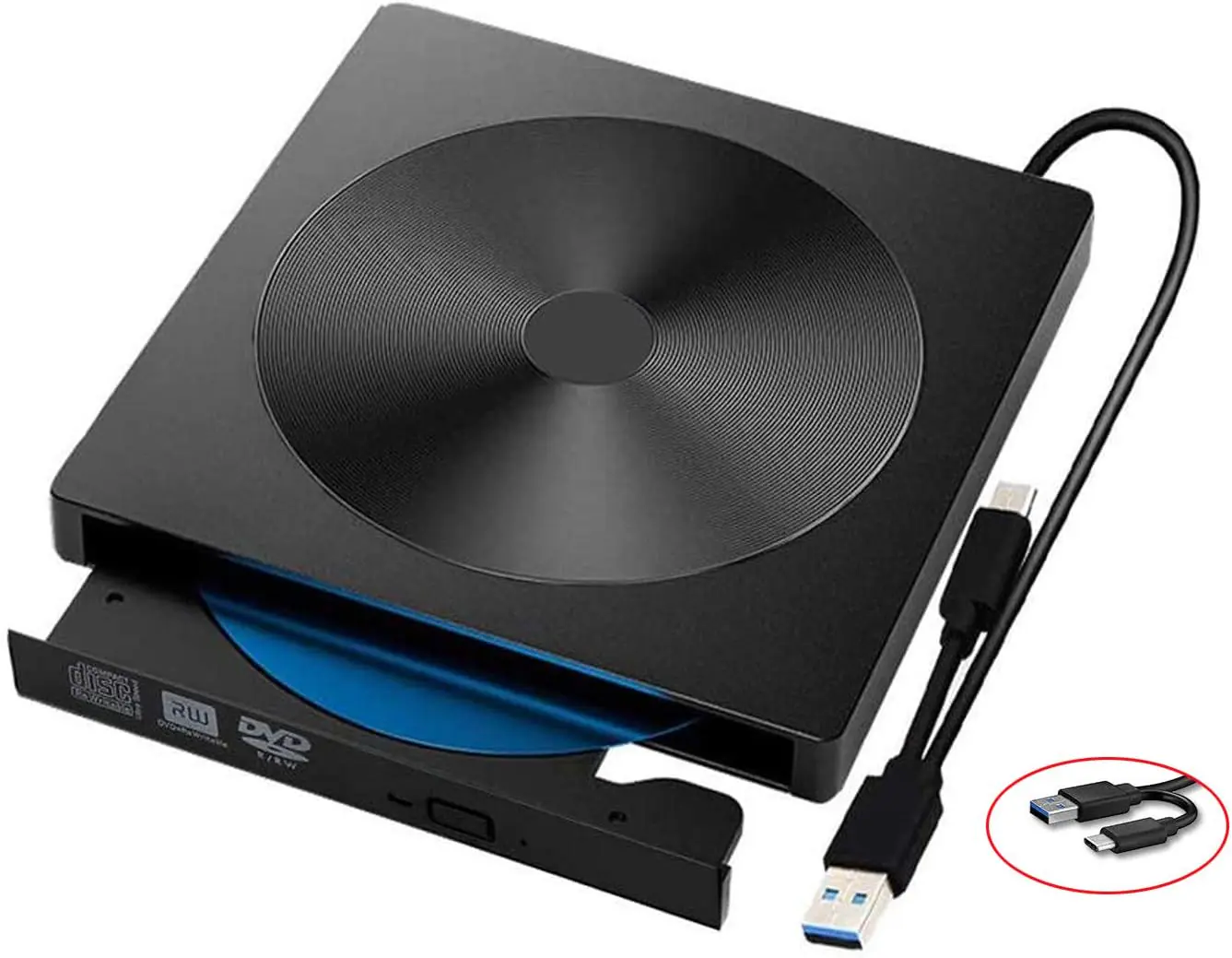 Ultra-Thin USB 3.0 & Type-C External DVD Writer – Portable, High-Speed, Plug & Play, Compatible with Windows, Mac & Linux