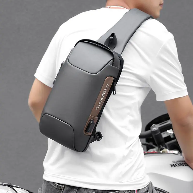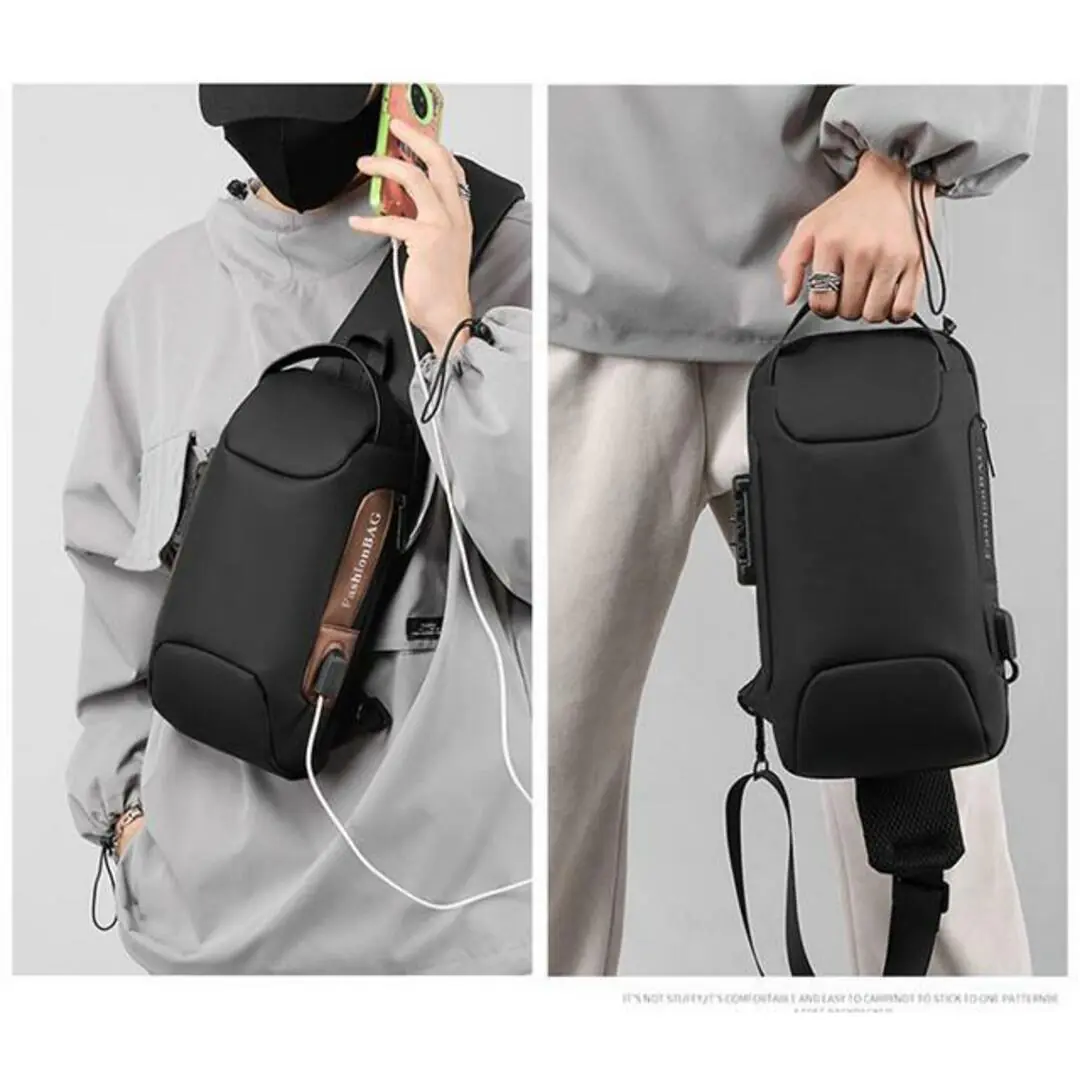 Equipped with a password-protected lock and USB charging port, this stylish sling bag offers security and convenience for urban travel or everyday use. - Customizable Comfort