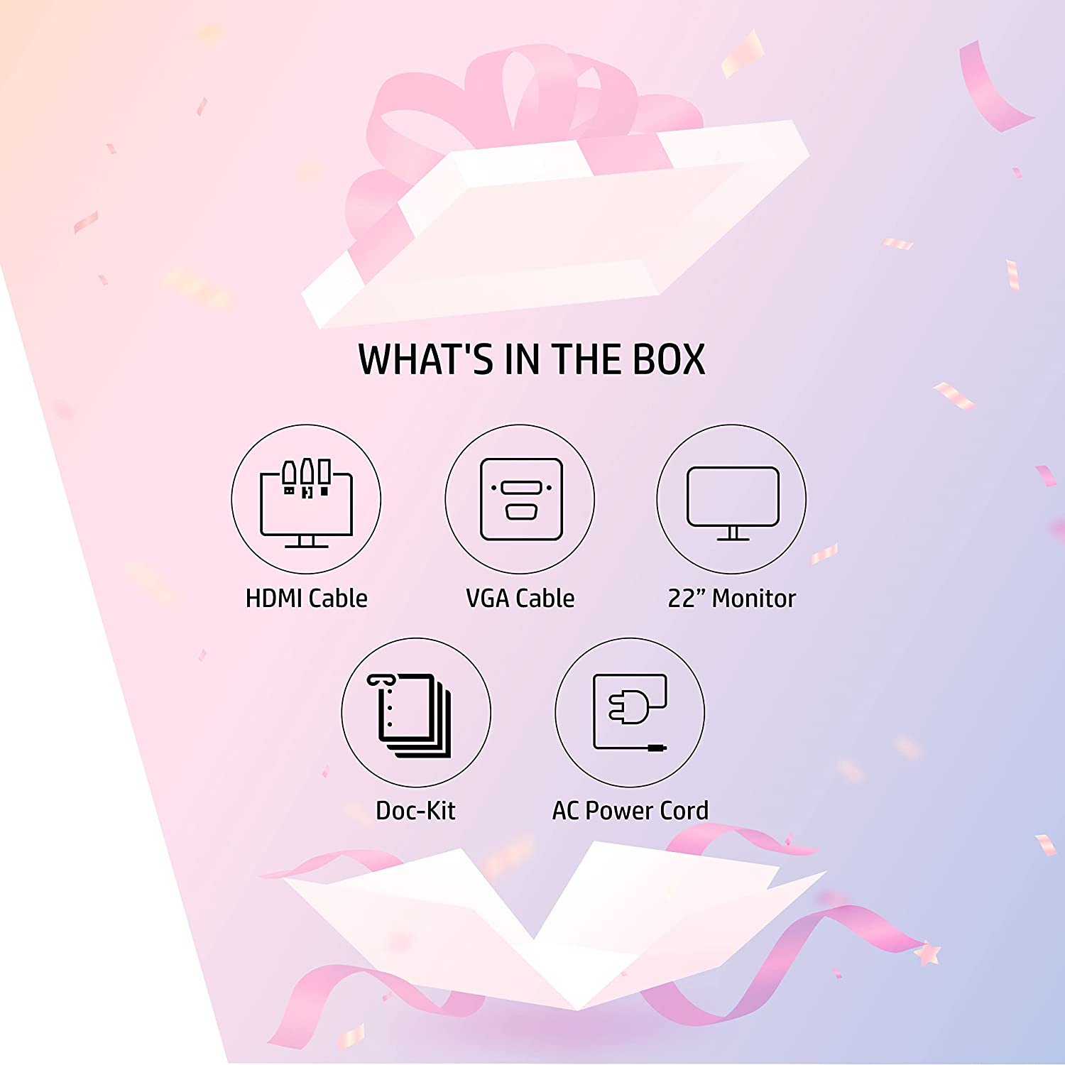 HP M22f 21.5-inches FHD Monitor 75Hz IPS 3-Sided Micro-Edge Monitor, AMD Free Sync , Eye Safe Certified , with 1xVGA, 1xHDMI 1.4 Ports, 300 nits ( 1920 x 1080 pixels) – Silver