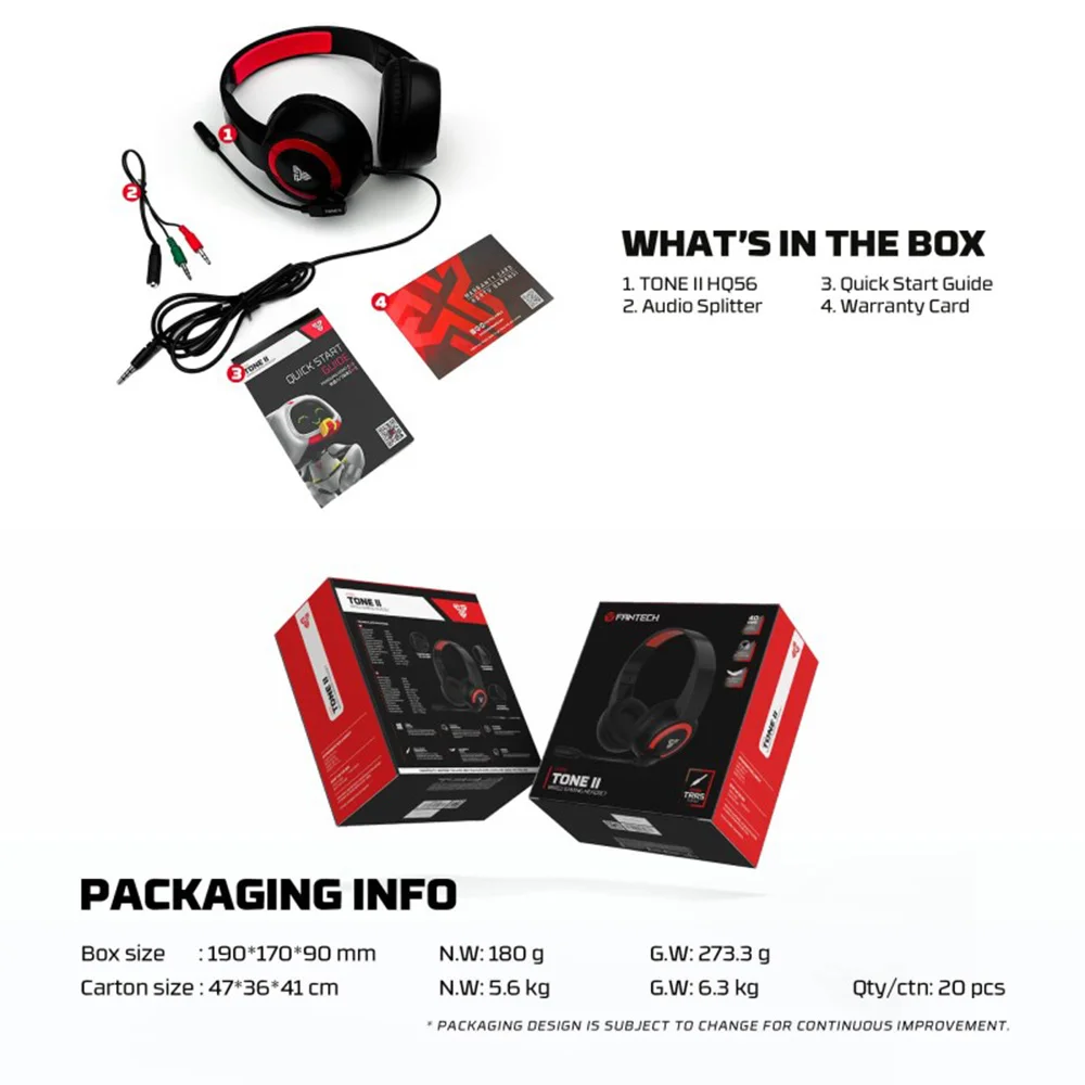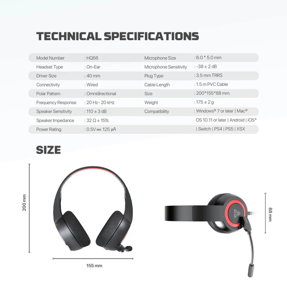 FANTECH HQ56 Tone II Wired Gaming Headset – 40mm Drivers, Foldable Mic, 1.5m Cable, Lightweight 175g, On-Ear Comfort, 3.5mm TRRS Plug – PC, Console & Mobile Compatible