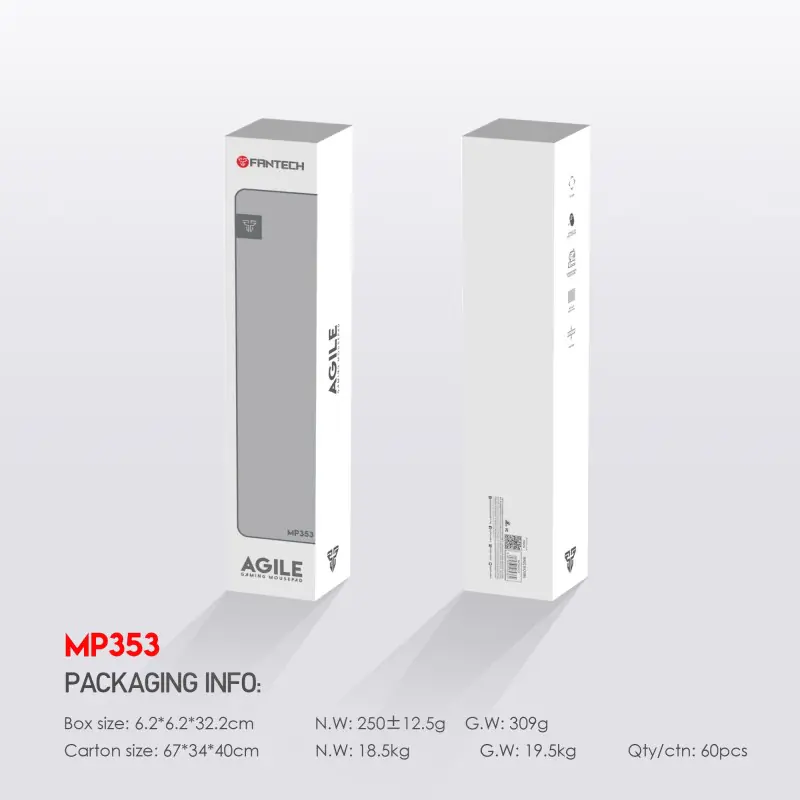 FANTECH MP353 Agile Gaming Mouse Pad – Medium 350x300x4mm, Optimized for Speed & Control, Anti-Slip Rubber Base, Spill-Resistant, Durable Stitched Edges, Gray