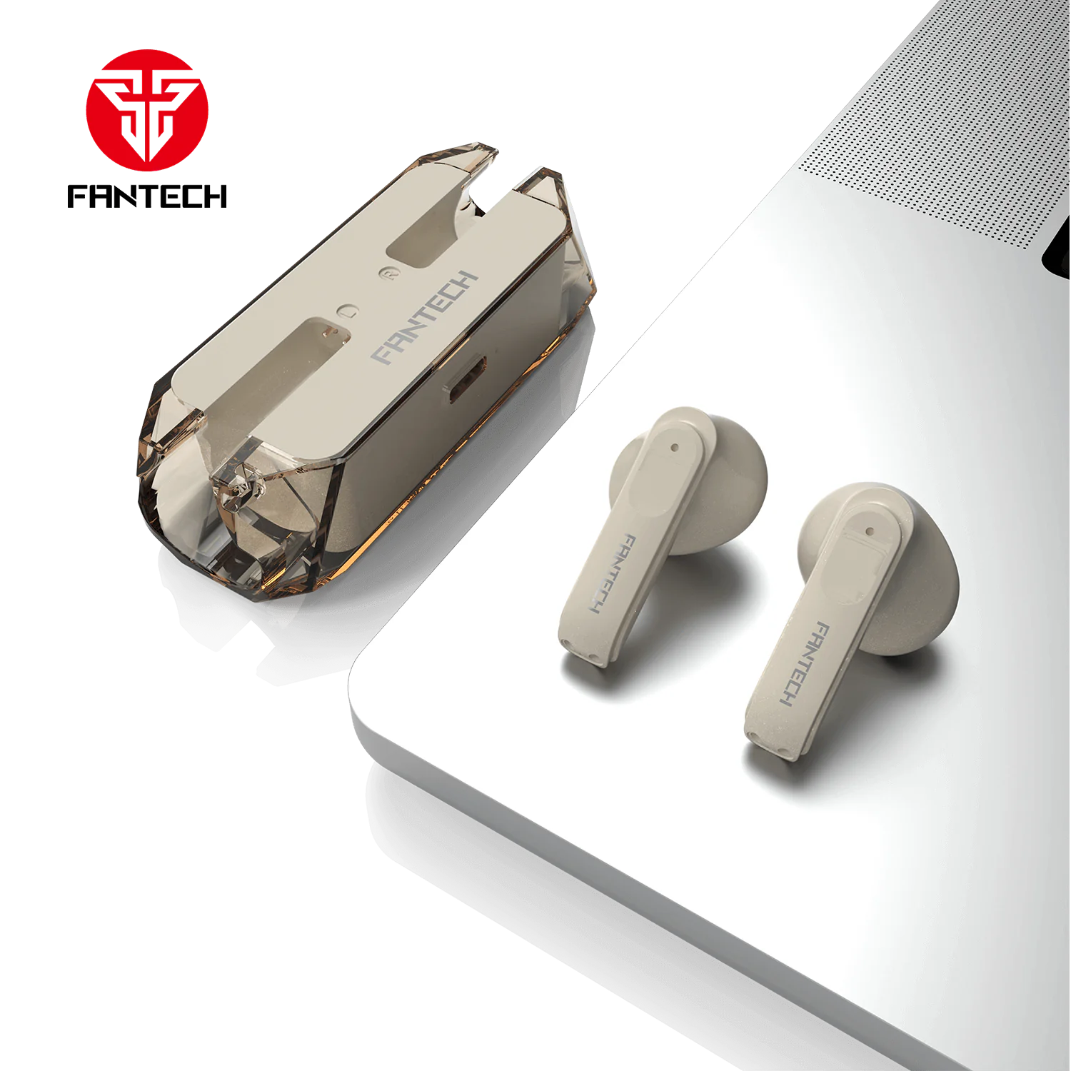 FANTECH WAVE 11 TW11V2 Wireless Earphones – Bluetooth 5.3, 13mm Drivers, Type-C Charging, Up to 5 Hours Playtime, Clear Mic Sensitivity, Beige