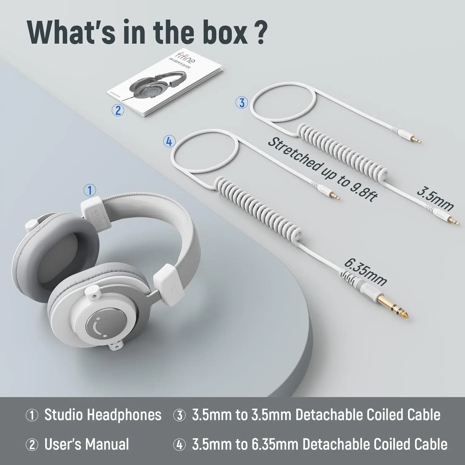 - Detachable Coiled Cables: Includes two 9.8ft detachable DJ-style cables with 3.5mm and 1/4″ audio plugs for versatile device compatibility without the need for extra adapters.