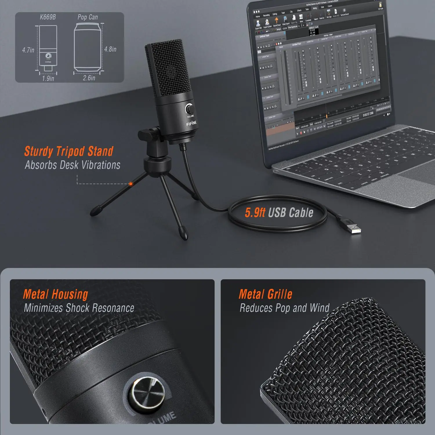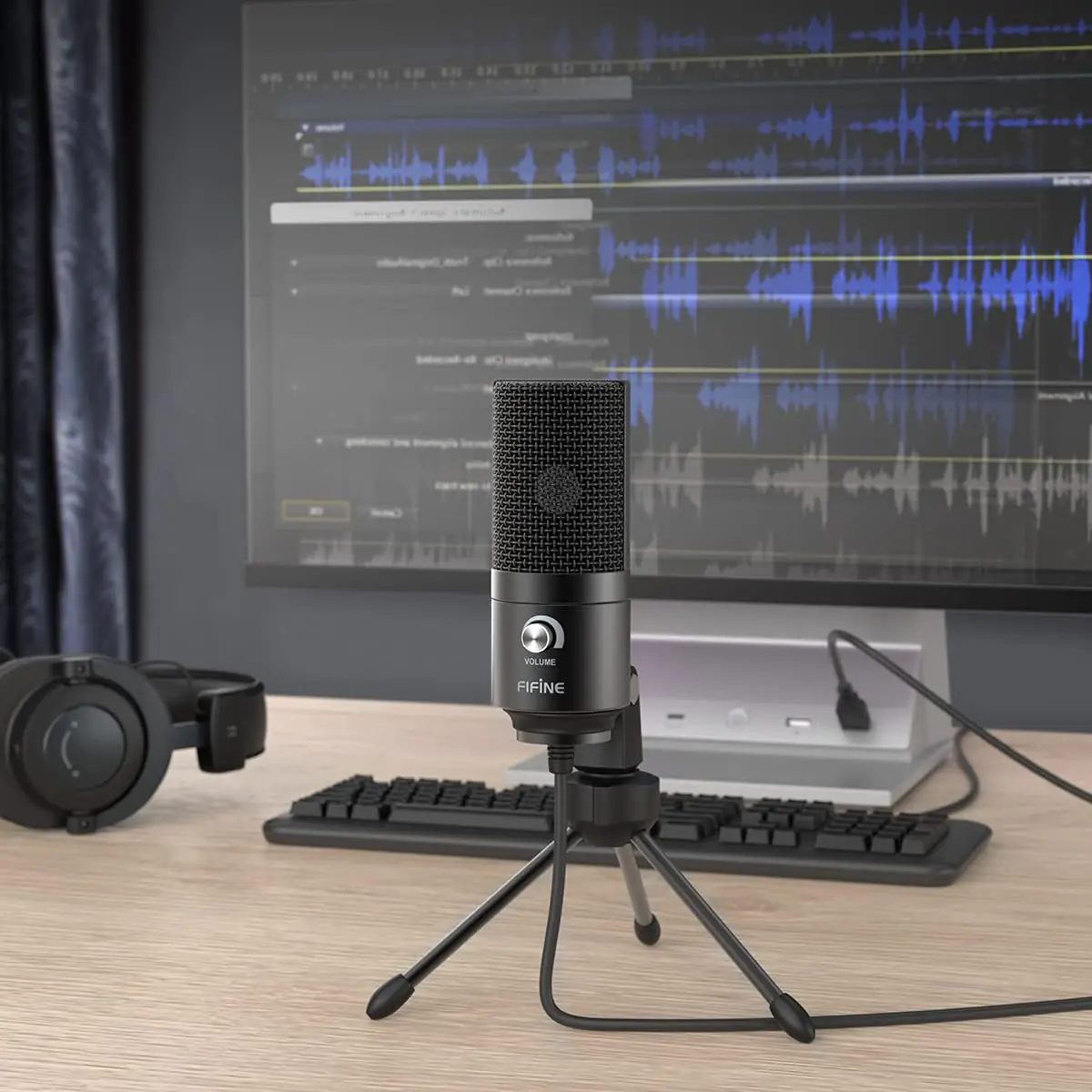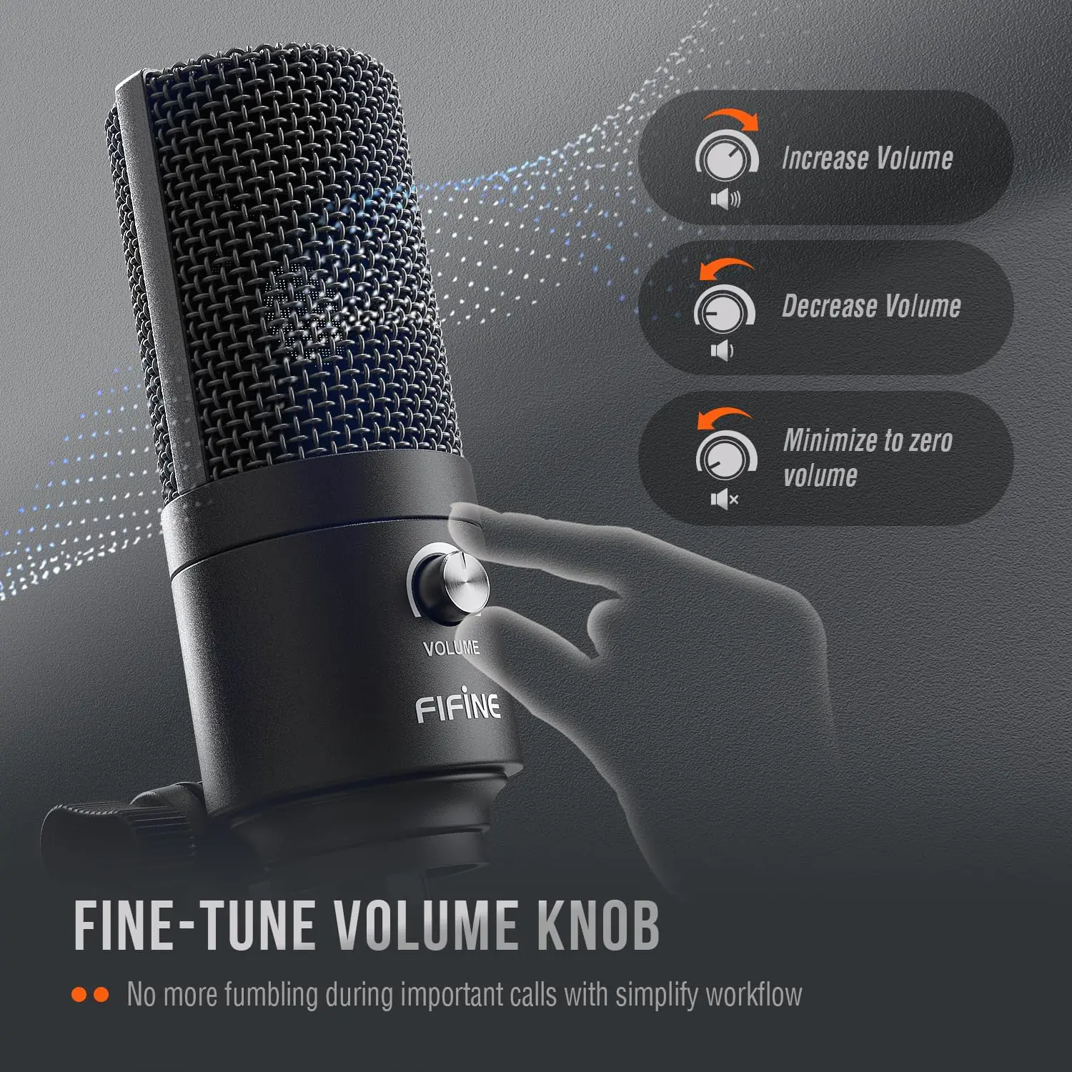 FIFINE K669B USB Microphone Black – Plug & Play Desktop Mic with Volume Dial for Gaming, Streaming, Podcasting, Voice-Over, Recording & Meetings