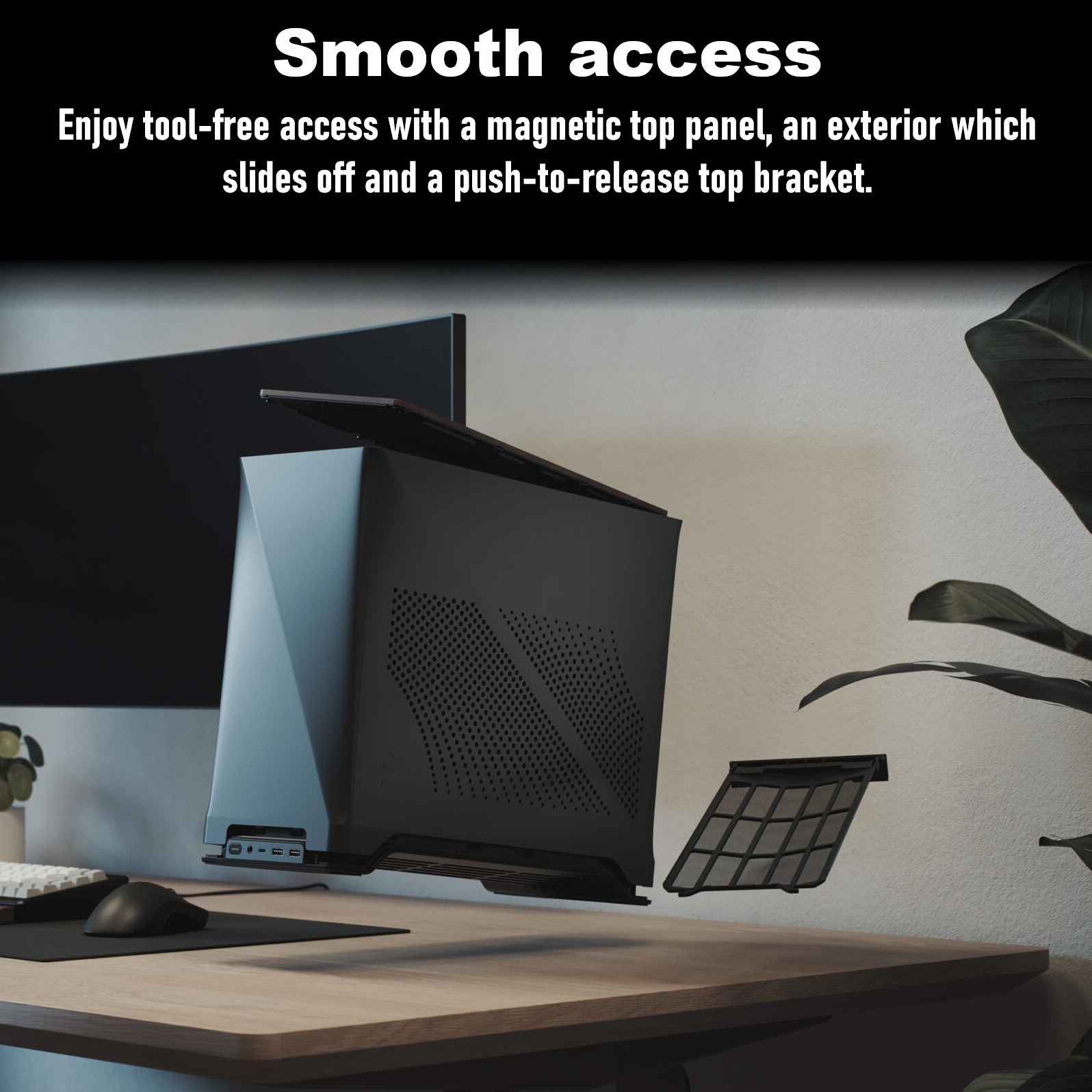 • Slide, Pop, Access: Tool-free shell slides off like a sci-fi escape pod, and the push-to-release top bracket makes upgrades feel illegal-levels easy.