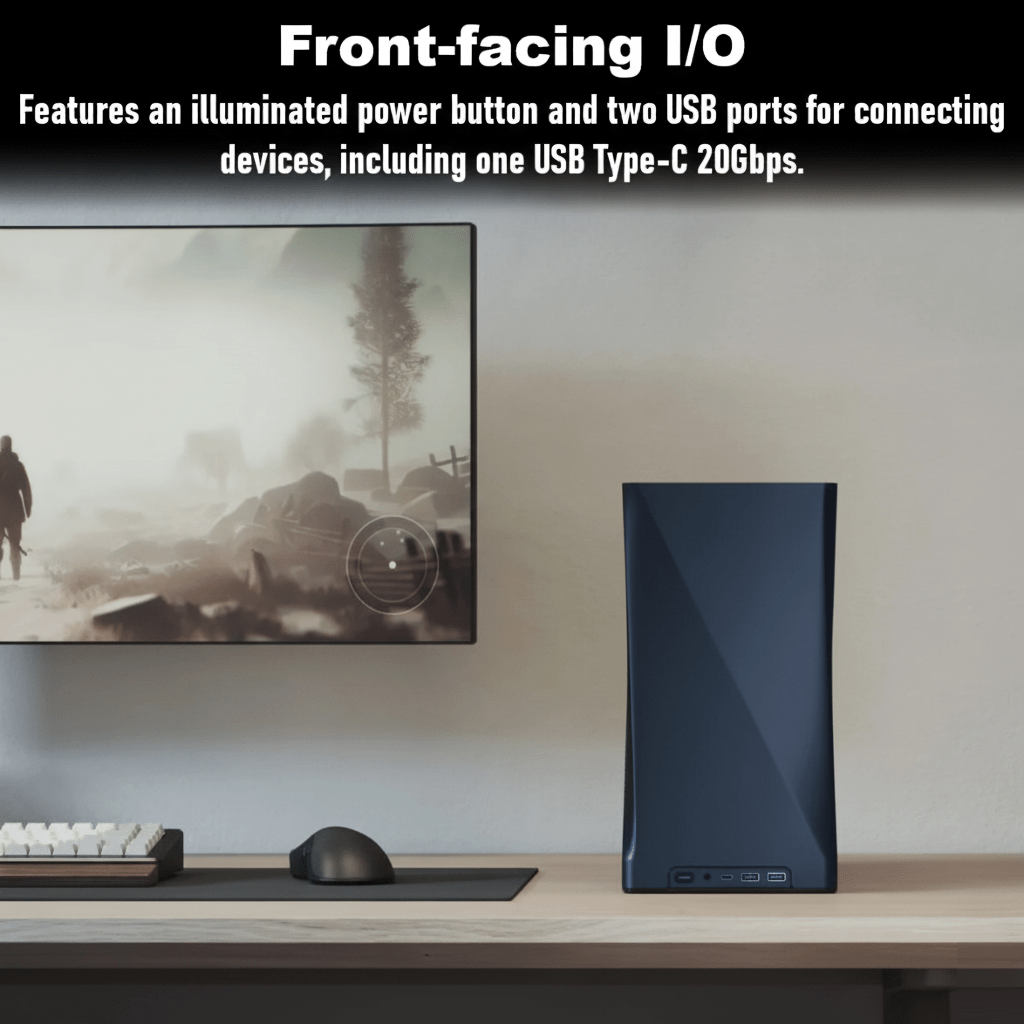 • Architectural Gaming Chic: Sculpted anodized aluminum exterior in elegant Midnight Blue, topped with a magnet-fastened solid walnut panel—your build just became furniture-grade art.