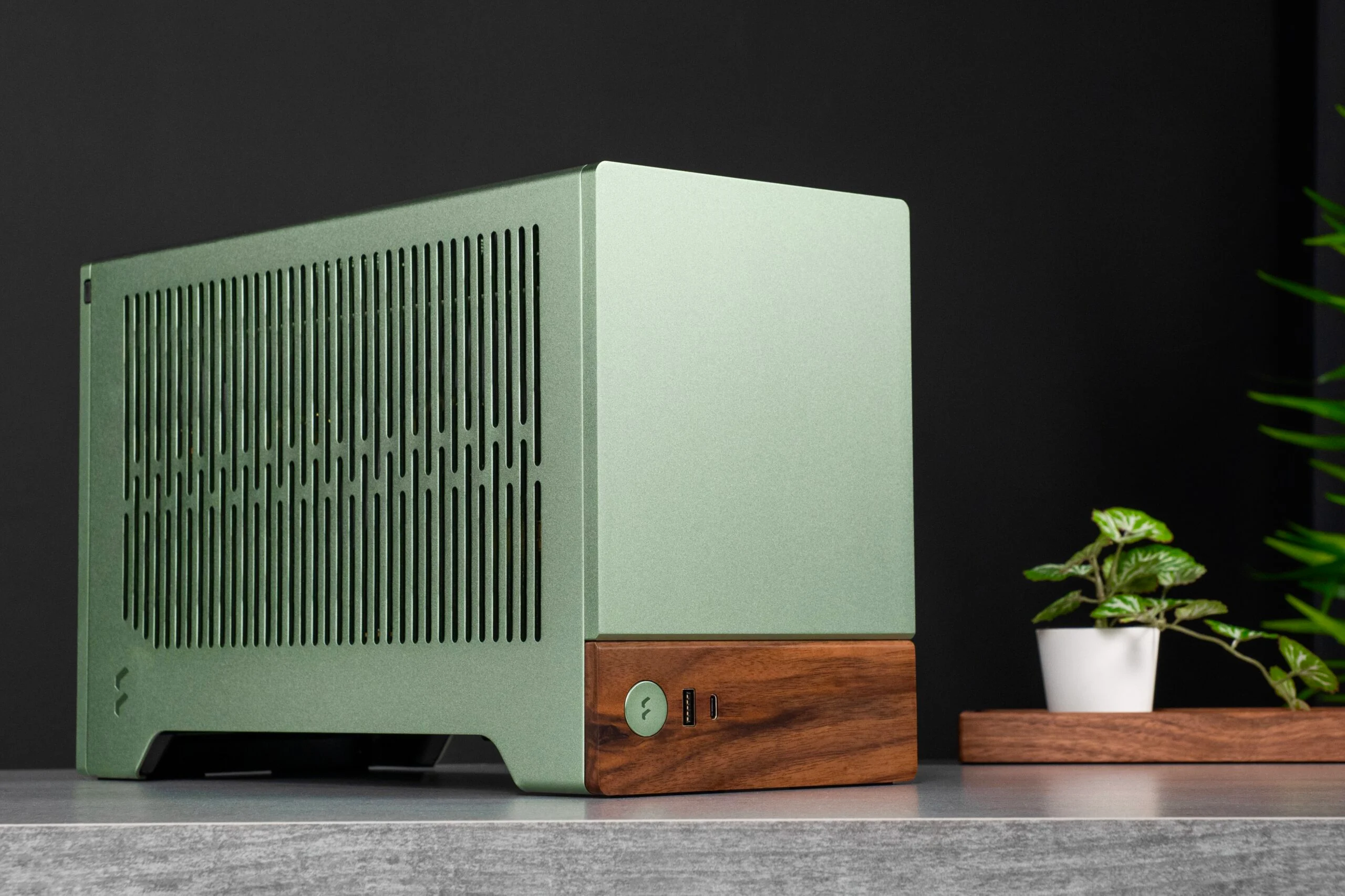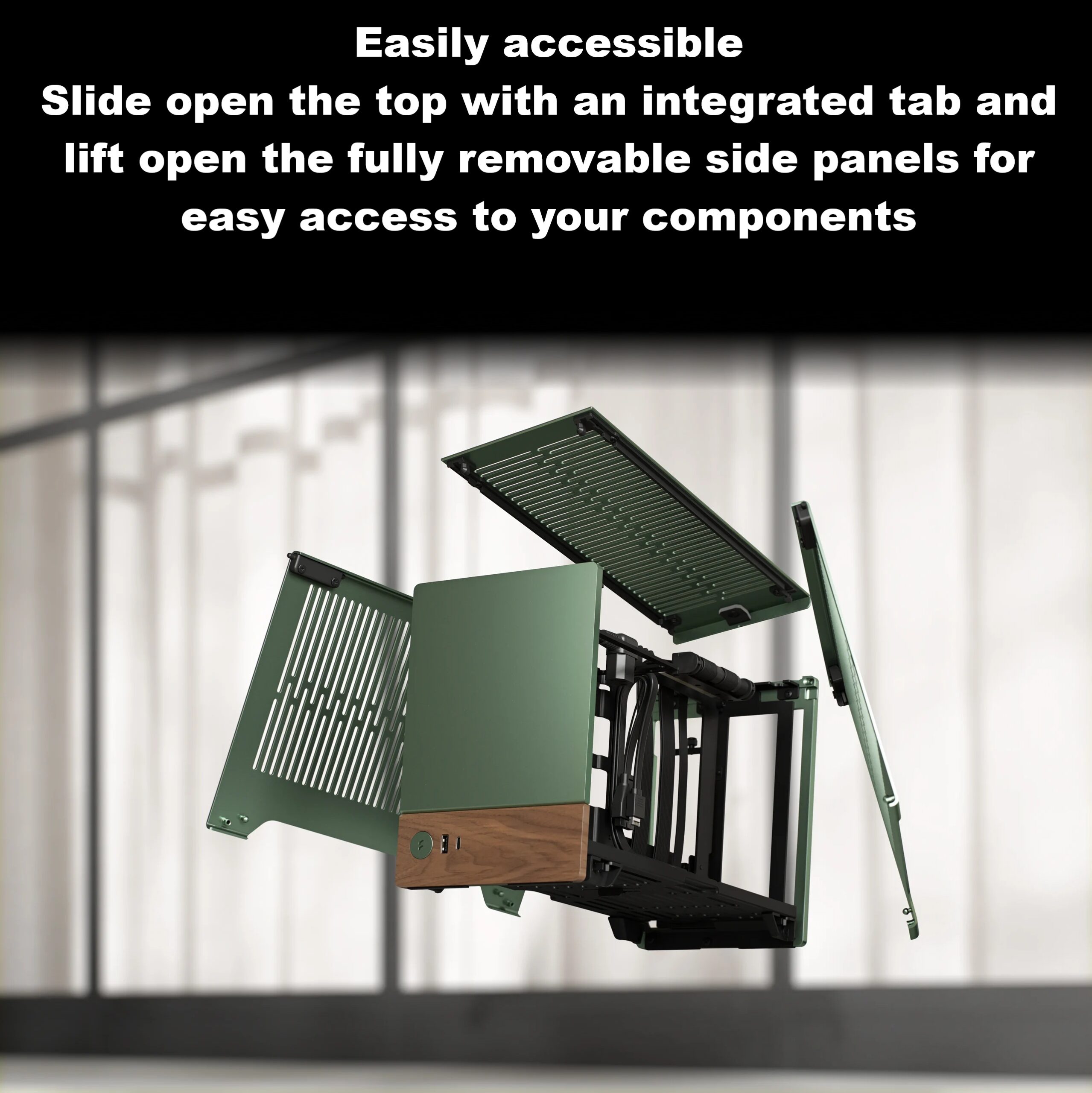 Fractal Terra JADE Mini-ITX PC Case With Walnut Front, 8mm CNC Aluminum, PCIe 4.0 Riser, Adjustable 30mm Spine, 322mm GPU Clearance, SFX PSU Support, 2× SSD Mounts ~ FD-C-TER1N-03