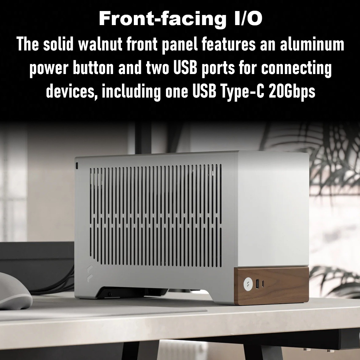 - Front I/O That Plays Nice — Aluminum power button, USB-C 20Gbps, USB-A 5Gbps.