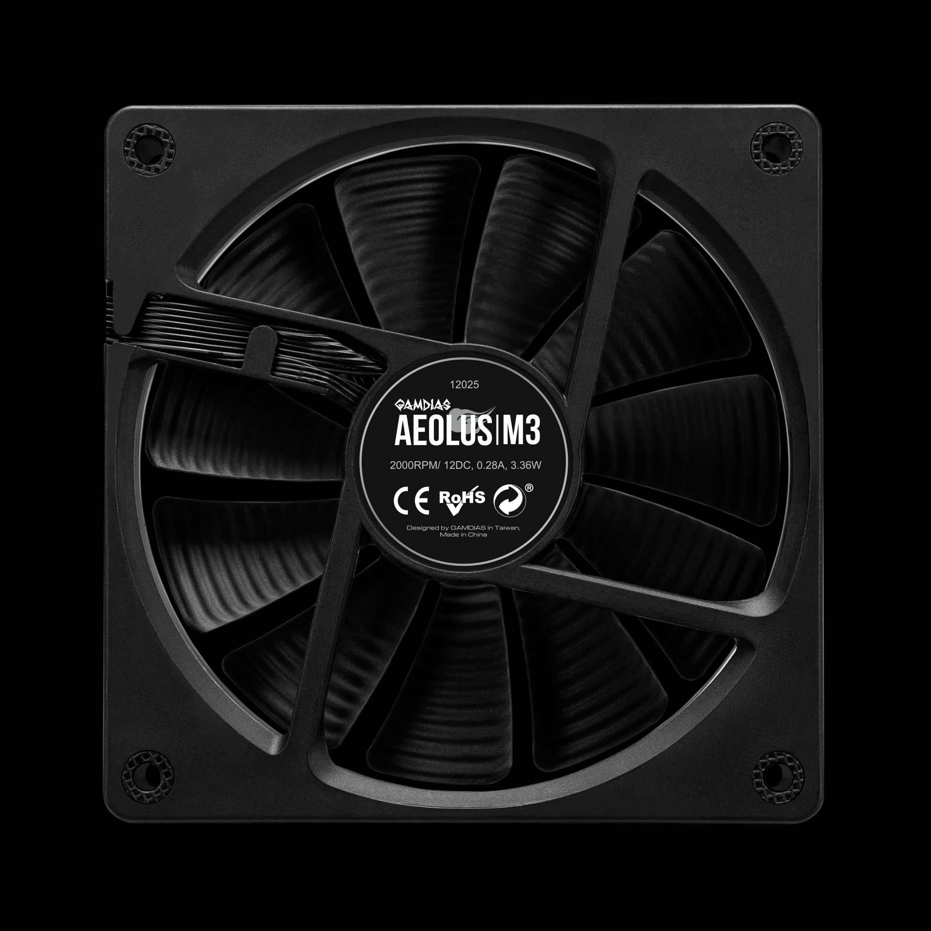 - ULTRA PERFORMANCE. SILENT ACOUSTICS : The AEOLUS M3-1204R is a 3-pack combo of the AEOLUS M3-1201 ARGB fan with an additional PWM AEOLUS box and controller. The fans feature stealth black optimized fan blades for the highest performance, modified hydraulic bearing with smart PWM function, and low profile ARGB lighting to create the perfect aesthetics.