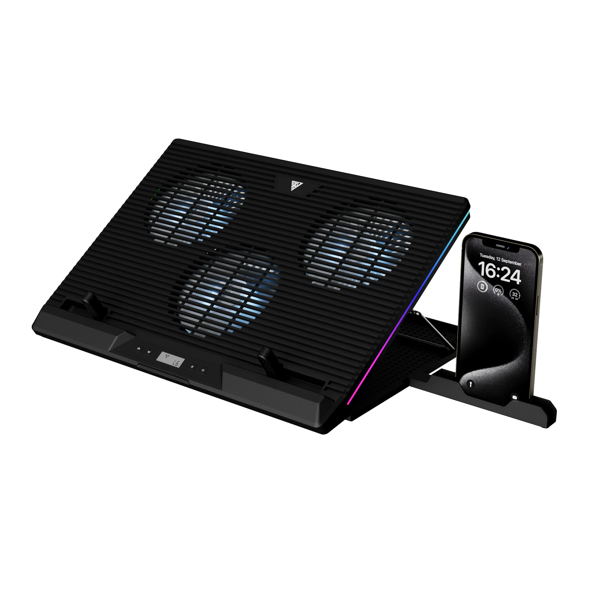 GAMDIAS AETHER M1 RGB Laptop Cooling Pad | Triple 120mm Fans | 10 RGB Modes | LCD Speed Control | 7 Adjustable Heights | USB-A Hub | Fits Laptops Up To 19″ Laptops