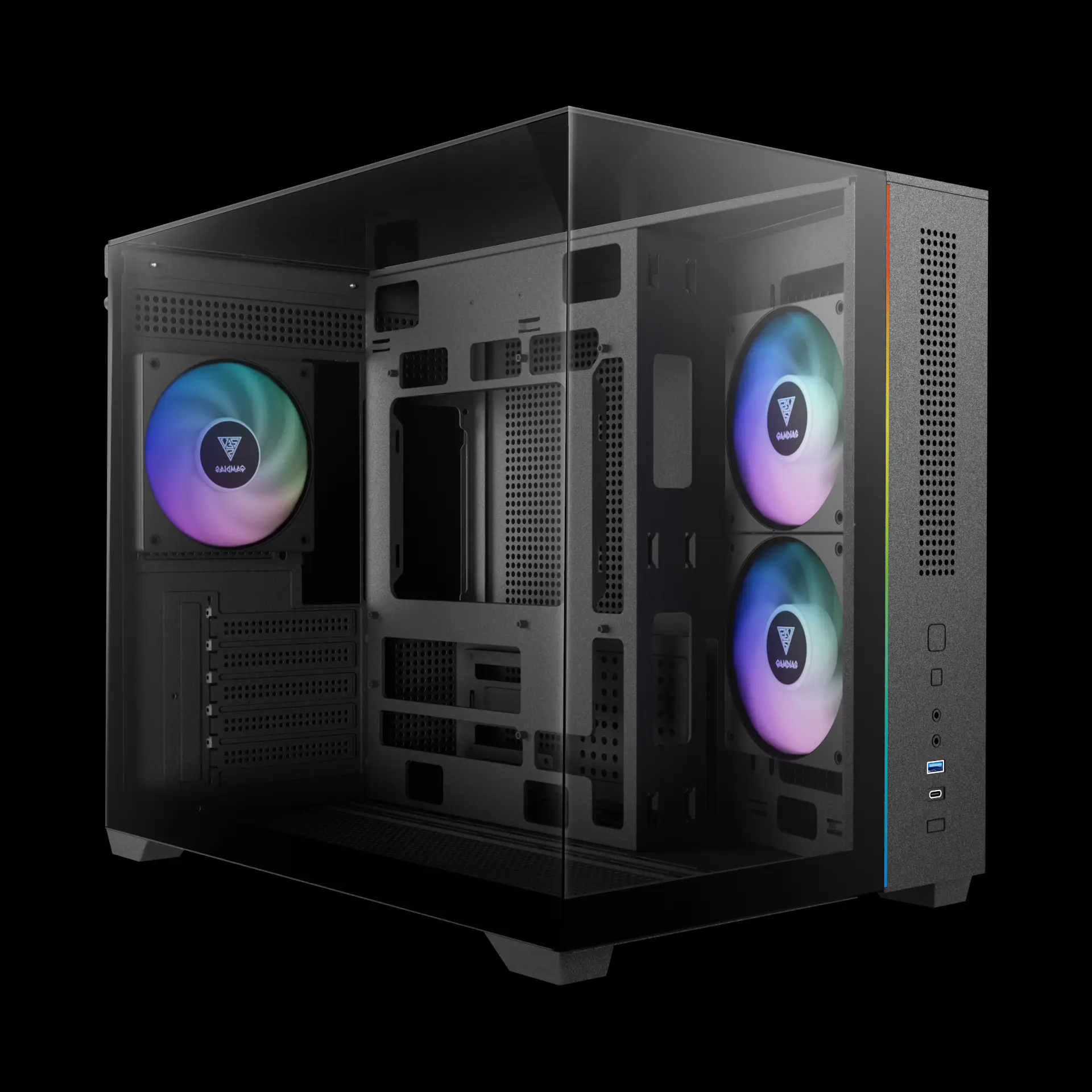 Gamdias Atlas M3M Micro-Tower Case With Three-Sided Tempered Glass, 3 NOTUS M1 ARGB Fans, 8-Port Hub, Angled Airflow, Gen 2 Type-C, And 400mm GPU Support | BLACK