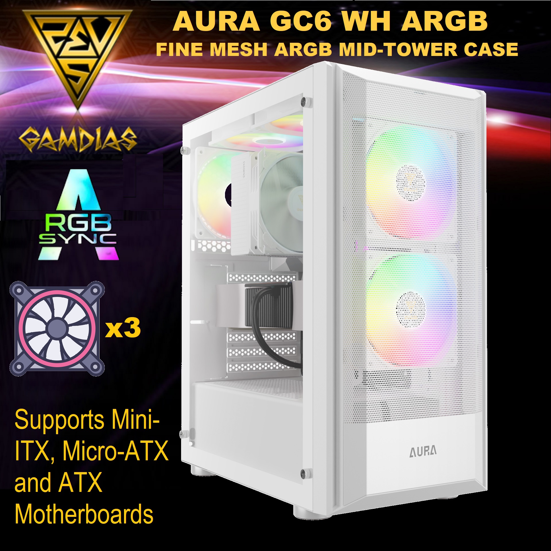 AURA-GC6-W AURA GC6 ARGB FINE MESH WHITE MID-TOWER CASE GAMDIAS AURA GC6 ARGB FINE MESH WHITE MID-TOWER CASE - Gaming Computer PC Case w/Tempered Glass, 3 Built-in 120mm Fixed RGB Fans, Support Up to 6X 120mm Fans, 360mm AIO/Radiator, 300mm GPU/VGA, 150mm CPU Cooler | WHITE AURA-GC6-WAURA-GC6-W AURA GC6 ARGB FINE MESH WHITE MID-TOWER CASE GAMDIAS AURA GC6 ARGB FINE MESH WHITE MID-TOWER CASE - Gaming Computer PC Case w/Tempered Glass, 3 Built-in 120mm Fixed RGB Fans, Support Up to 6X 120mm Fans, 360mm AIO/Radiator, 300mm GPU/VGA, 150mm CPU Cooler | WHITE AURA-GC6-WAURA-GC6-W AURA GC6 ARGB FINE MESH WHITE MID-TOWER CASE GAMDIAS AURA GC6 ARGB FINE MESH WHITE MID-TOWER CASE - Gaming Computer PC Case w/Tempered Glass, 3 Built-in 120mm Fixed RGB Fans, Support Up to 6X 120mm Fans, 360mm AIO/Radiator, 300mm GPU/VGA, 150mm CPU Cooler | WHITE AURA-GC6-WAURA-GC6-W AURA GC6 ARGB FINE MESH WHITE MID-TOWER CASE GAMDIAS AURA GC6 ARGB FINE MESH WHITE MID-TOWER CASE - Gaming Computer PC Case w/Tempered Glass, 3 Built-in 120mm Fixed RGB Fans, Support Up to 6X 120mm Fans, 360mm AIO/Radiator, 300mm GPU/VGA, 150mm CPU Cooler | WHITE AURA-GC6-WAURA-GC6-W AURA GC6 ARGB FINE MESH WHITE MID-TOWER CASE GAMDIAS AURA GC6 ARGB FINE MESH WHITE MID-TOWER CASE - Gaming Computer PC Case w/Tempered Glass, 3 Built-in 120mm Fixed RGB Fans, Support Up to 6X 120mm Fans, 360mm AIO/Radiator, 300mm GPU/VGA, 150mm CPU Cooler | WHITE AURA-GC6-W