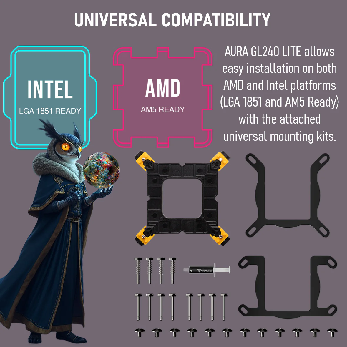 - Universal Socket Compatibility : Supports both Intel and AMD platforms—including LGA 1851, LGA 1700, AM5, and more—thanks to the included universal mounting kit for seamless installation.