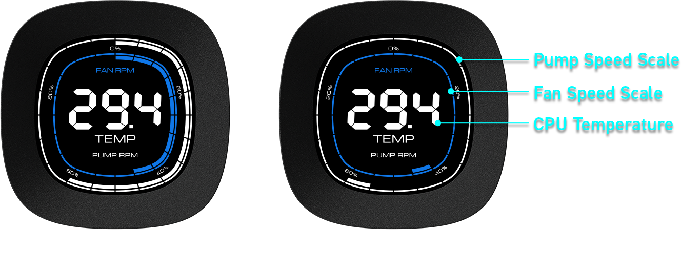 - Rotatable 2.1″ LCD Displays Real-time System Information