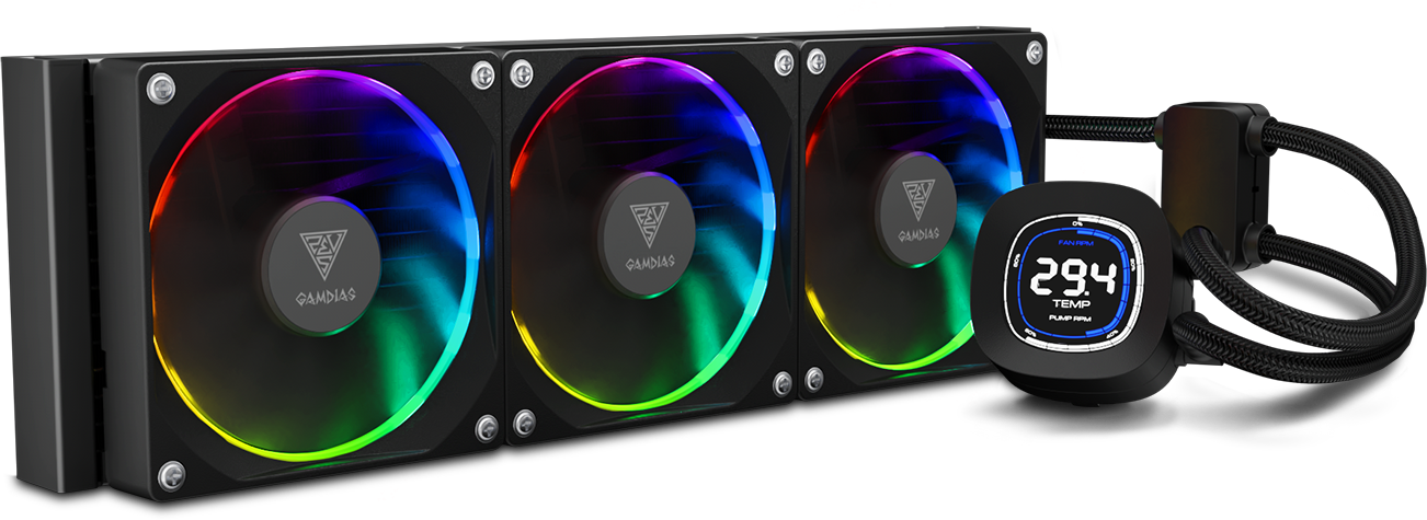 GAMDIAS CHIONE M4-420 ELITE LIQUID COOLER , Support LGA 1700 / AM5 , LCD Display , PWM Pump , ARGB Motherboard Sync , Hydraulic bearing PWM fans – BLACK