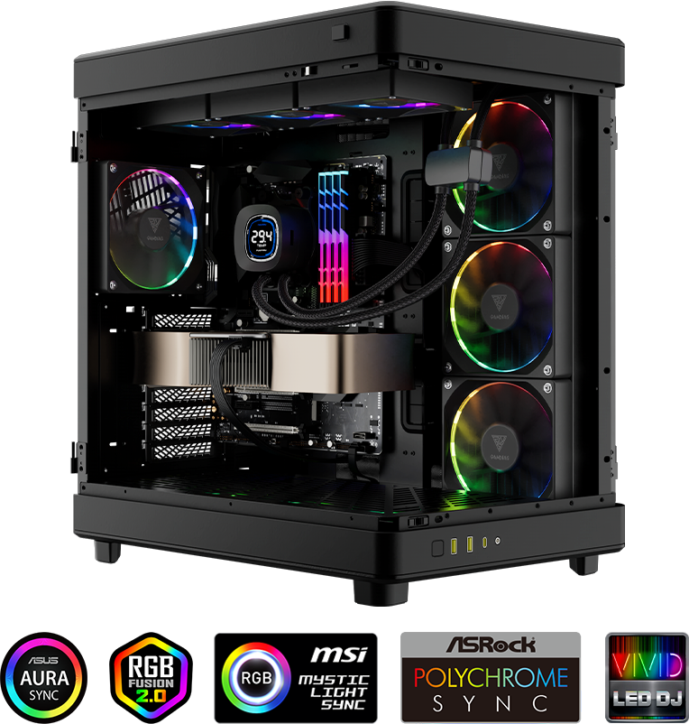 Built with an emphasis on superior airflow performance, the PWM fans operate up to 1600 RPM and provide airflow of up to 90 CFM. The fans feature hydraulic bearings for silent operations and fully addressable low-profile ARGB lighting providing a modish look with a long lifespan.
