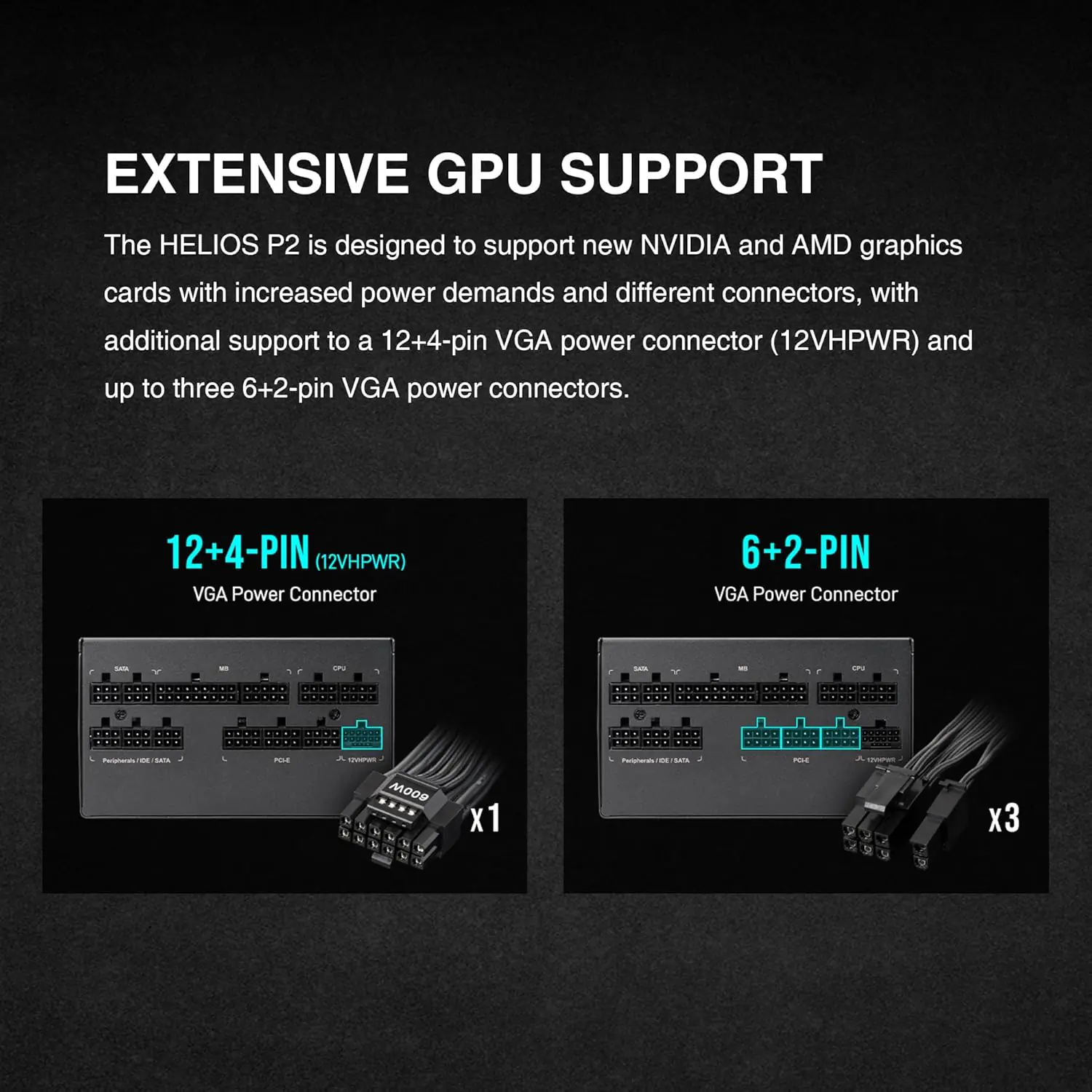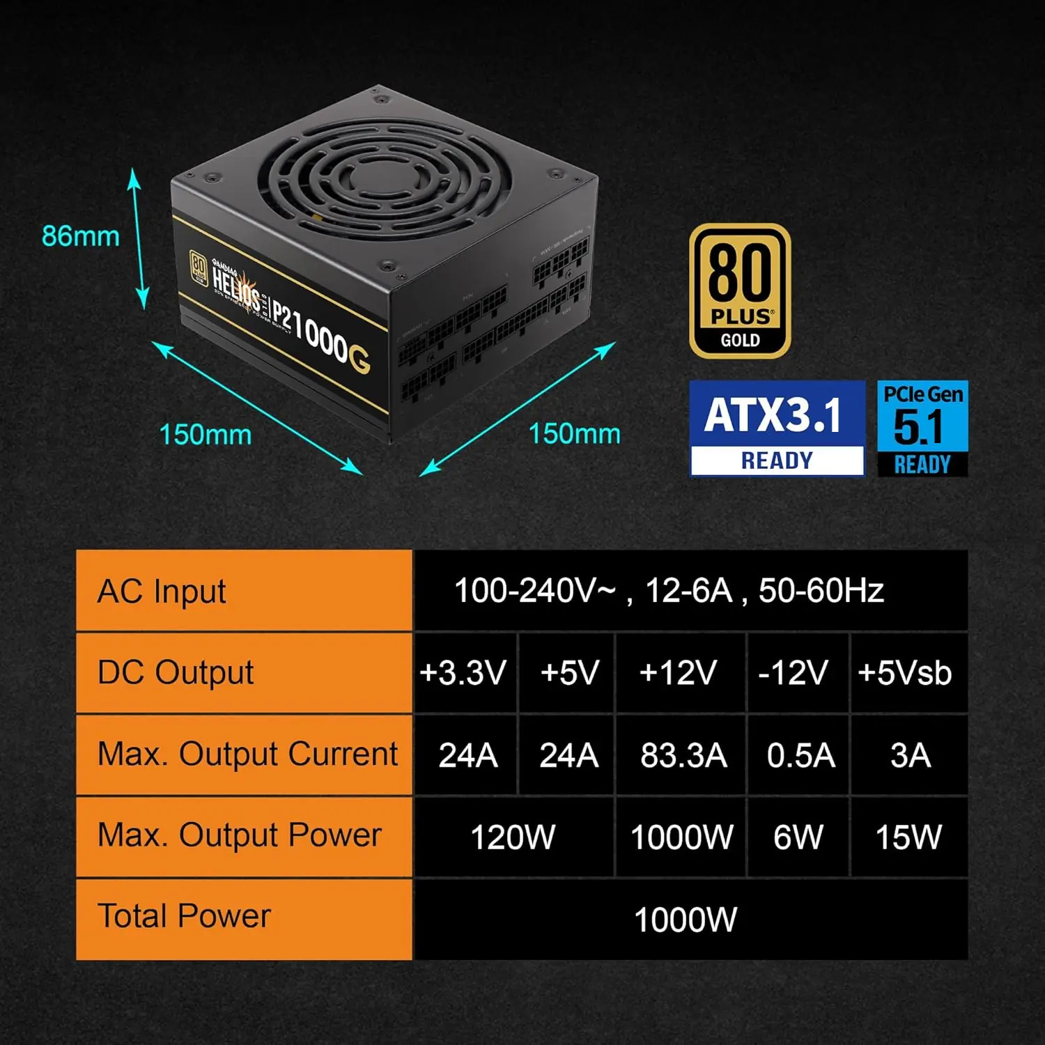 - Peak Performance With 1000W Gold Power : The HELIOS P2-1000G delivers stable, high-efficiency output with 80 Plus Gold certification—ideal for power-hungry builds and next-gen GPUs.