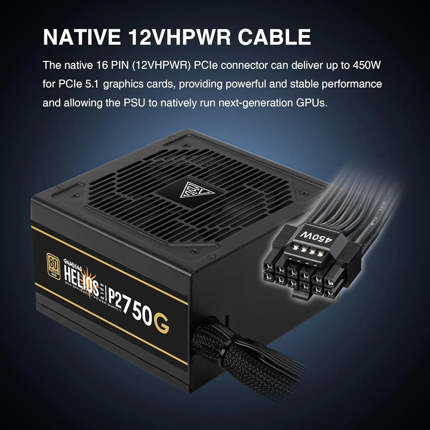 - Native 12VHPWR (12+4-Pin) Support : Delivers up to 450W of clean, stable power directly to next-gen NVIDIA or AMD GPUs using the native 12VHPWR cable—no adapters needed.