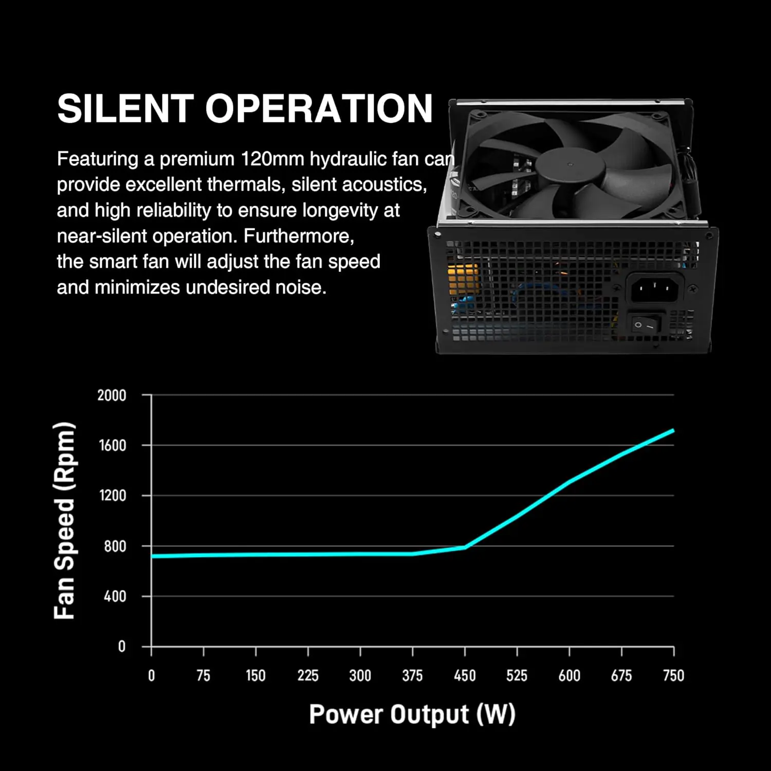 - Ultra-Quiet Hydraulic Bearing Fan : The 120mm fan intelligently adjusts speed for quiet operation and optimal thermals, ensuring long-lasting reliability under heavy workloads.