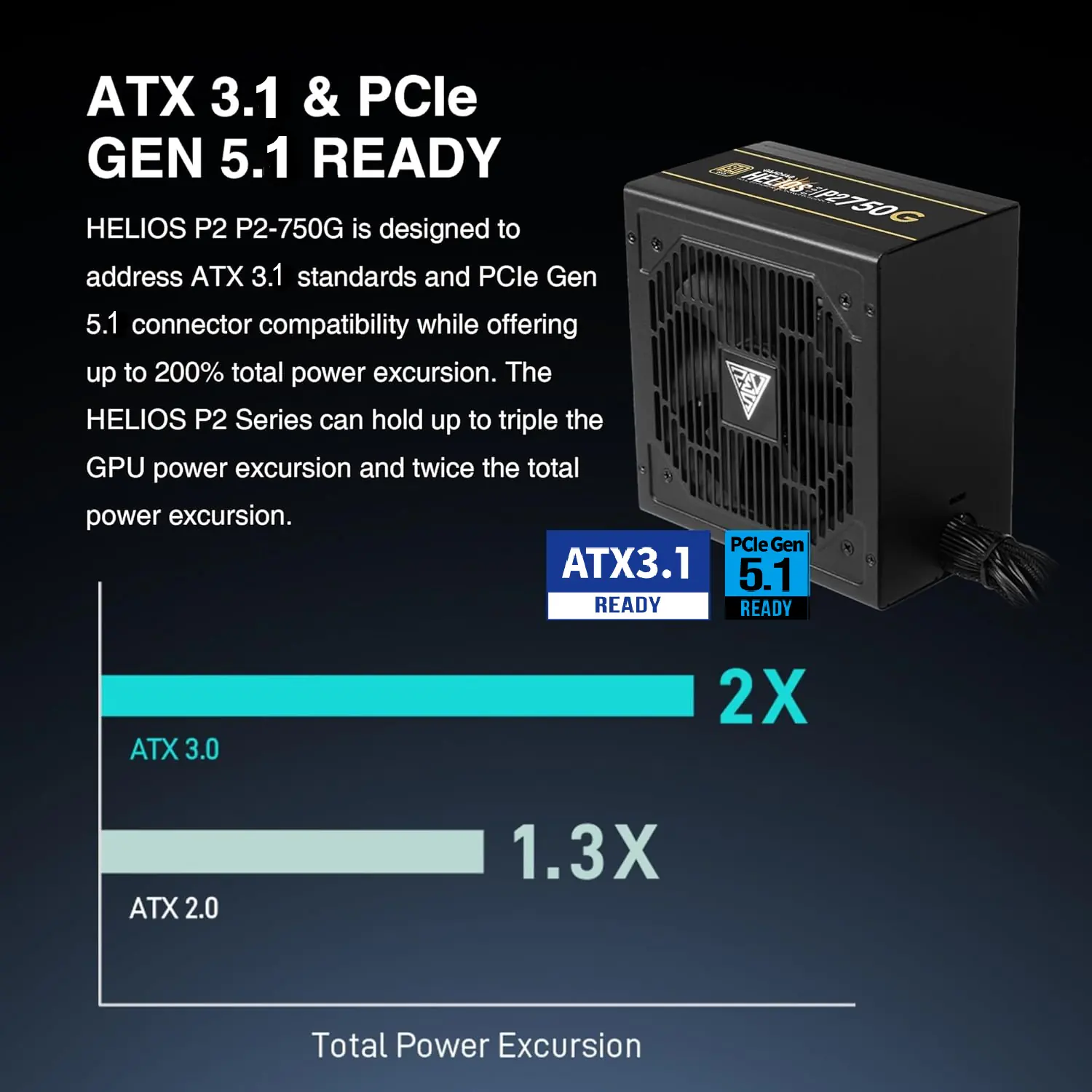 - ATX 3.1 & PCIe Gen 5.1 Ready : Future-proof your build. This PSU supports up to 200% total power excursion and triple GPU power excursion, meeting Intel’s latest ATX 3.1 and PCIe 5.1 standards.