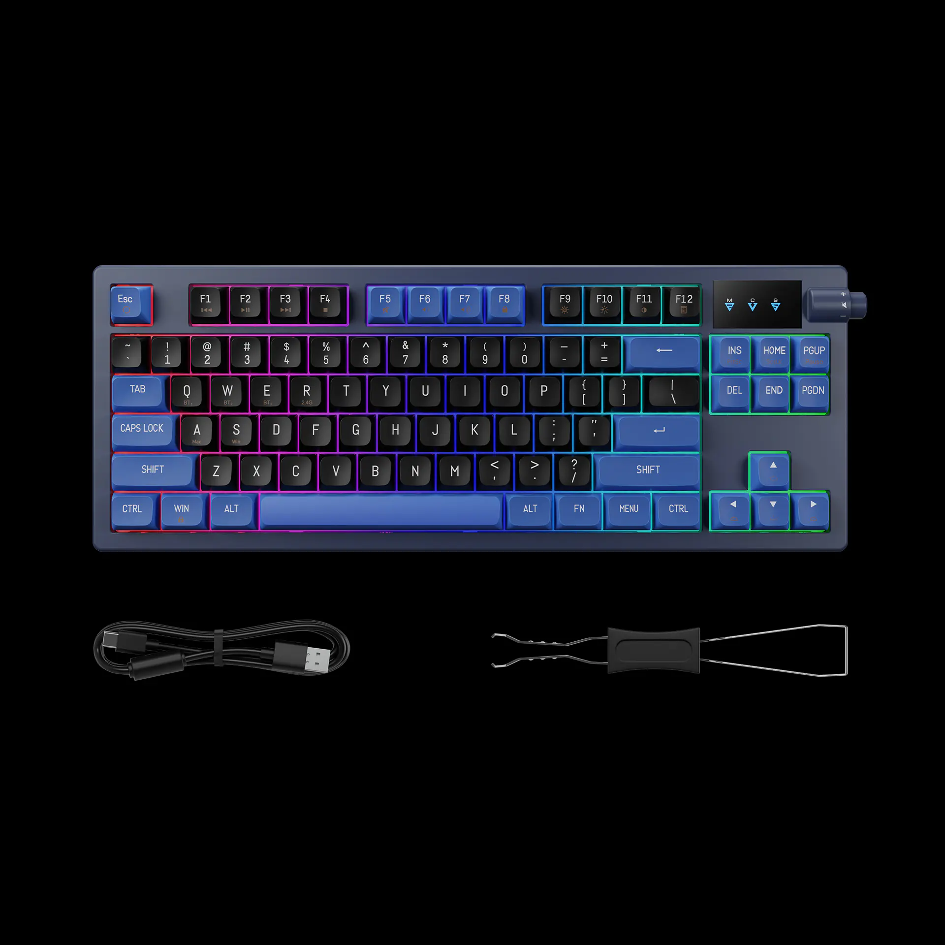 - Dual Colorway PBT Keycaps โ Matte black and royal blue in durable PBT that resists shine and looks elite.