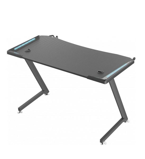 Gaming Computer Desk (120x60x73) MDF Top , Z Shaped Metal Legs , RGB Lit , Headset & Cup Holders | Black