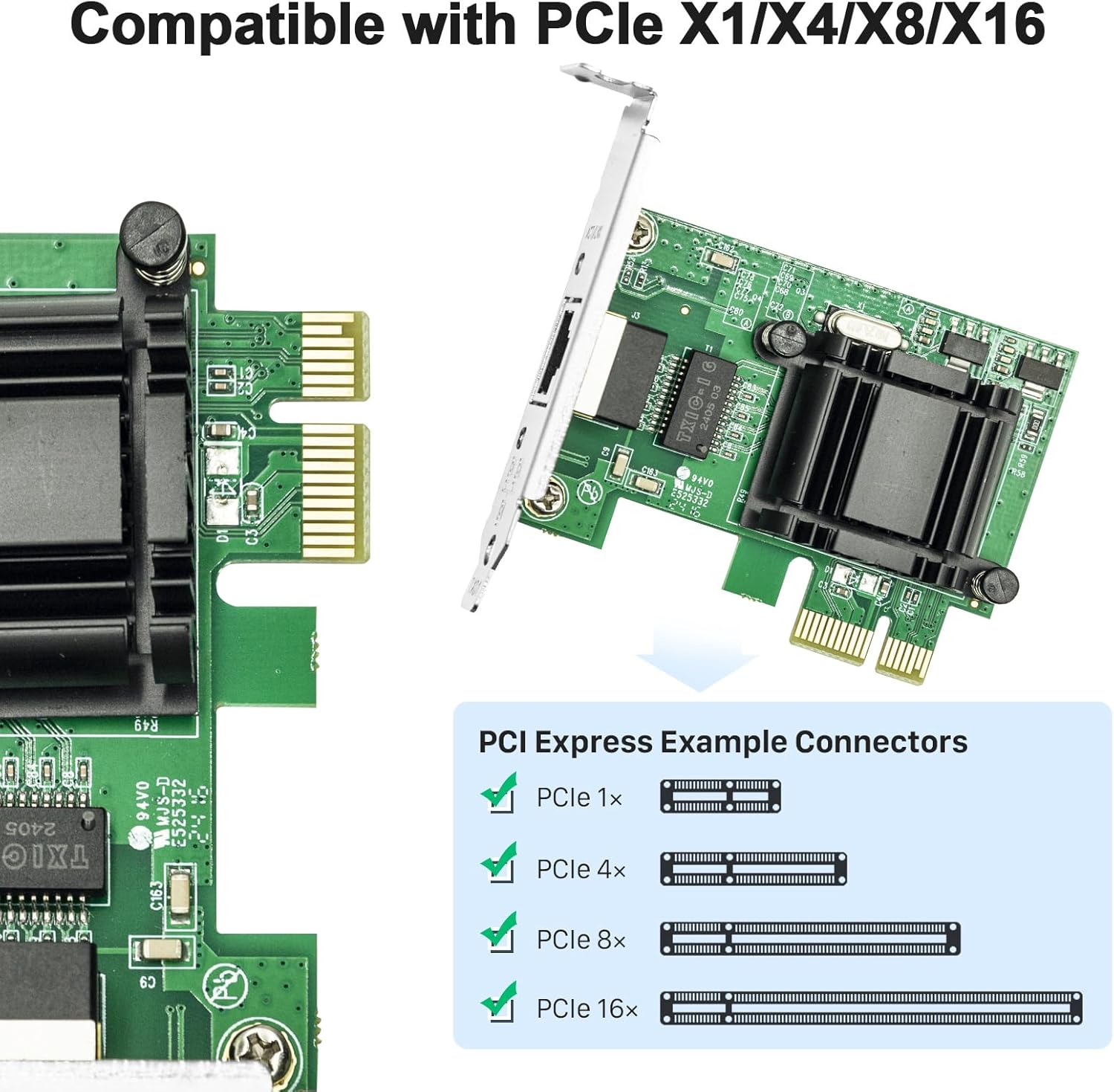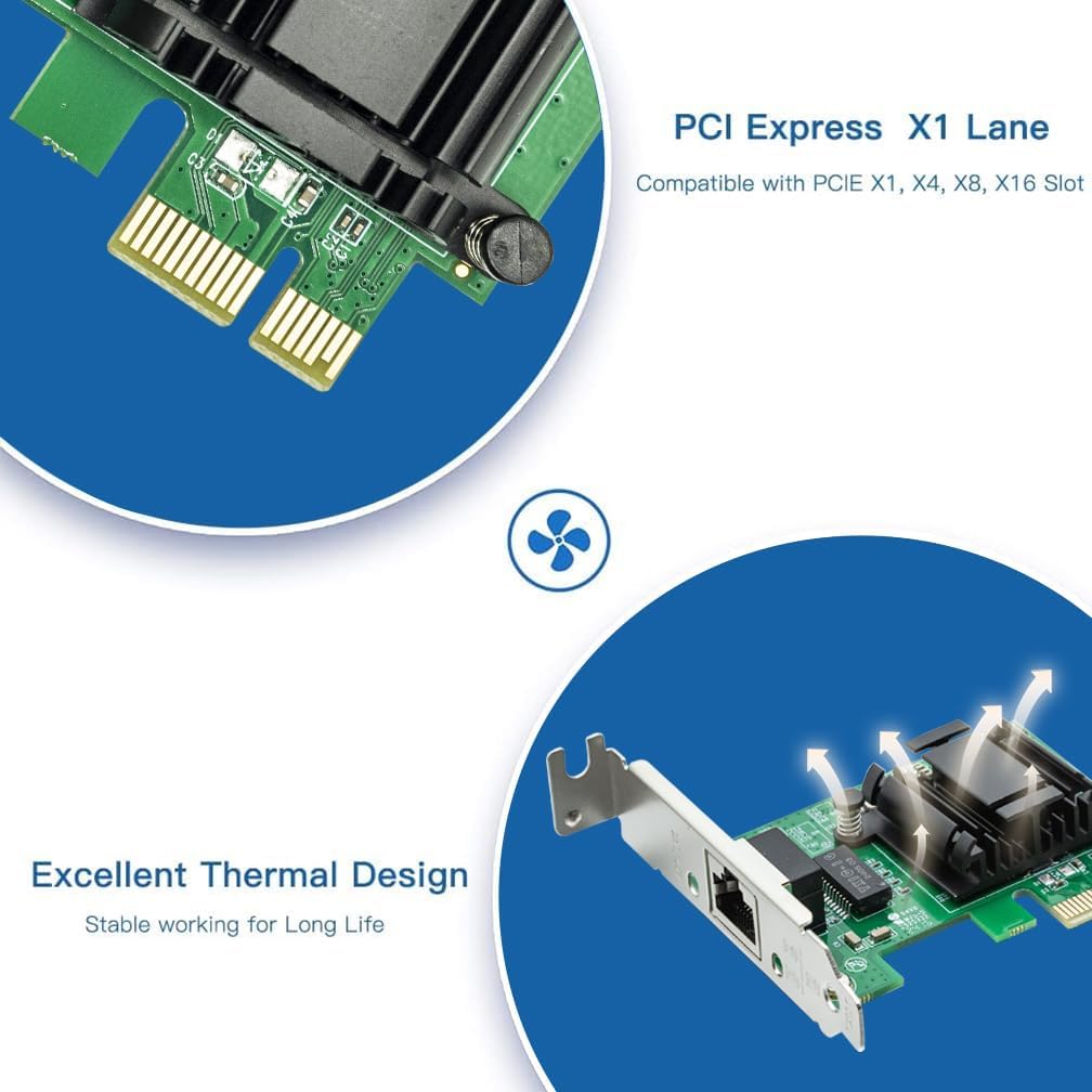 - 【Advanced Ethernet Interface】Equipped the 2500MBASE-T Controller combines a Media Access Controller (MAC) with a PCI Express bus controller supporting PCI Express 2.0, this Gigabit computer network adapter has a wide range of functions, supporting VLAN, QOS policy, traffic control and other functions.It is not only low power and high performance, but also integrates power-efficient Ethernet and DMA