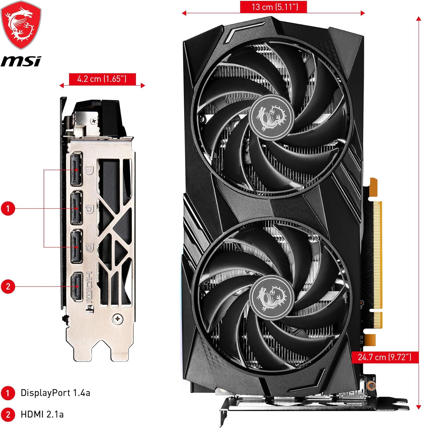 - COMPACT & POWERFUL – The 2 slot card (PCIe 4.0 x16) is only 247 mm long, weighs a mere 587 grams & has a recommended PSU wattage of 550 or higher (8-pin, 115W power consumption); Rear ports include 3 x DisplayPort 1.4a & 1 x HDMI 2.1 (4K/120Hz)
