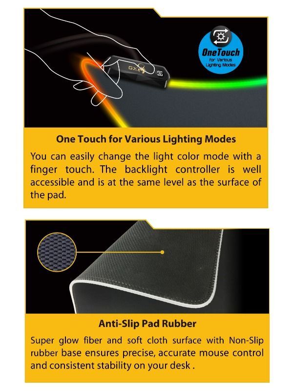 - Easy to use: This gaming mouse pad is powered by USB, plug and play, no driver required. One-touch control designed to switch the light colors and turn off, very convenient to use