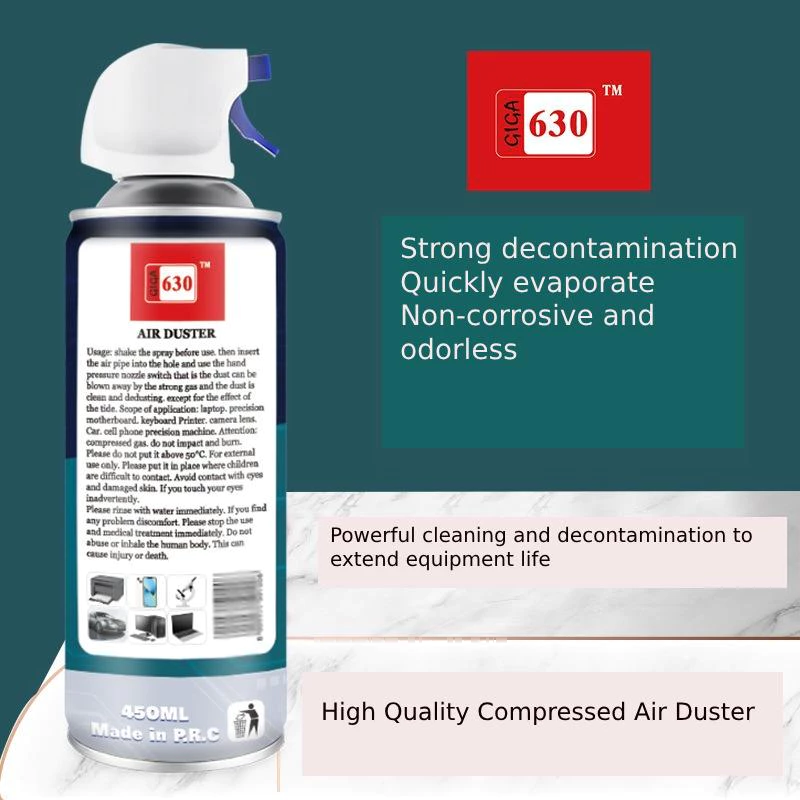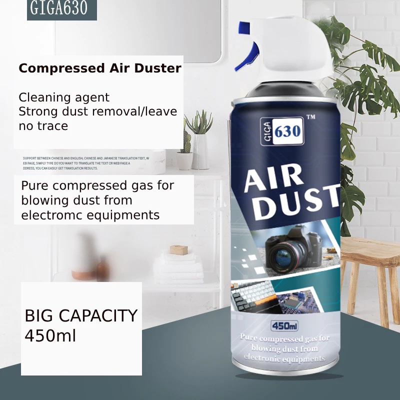 GIGA 630 AIR DUSTER Disposable Compressed Air Can – 450ml Cleaner for Sensitive Electronics – Secure Formulation – Delicate Cleansing via High-Pressure Air Blasting