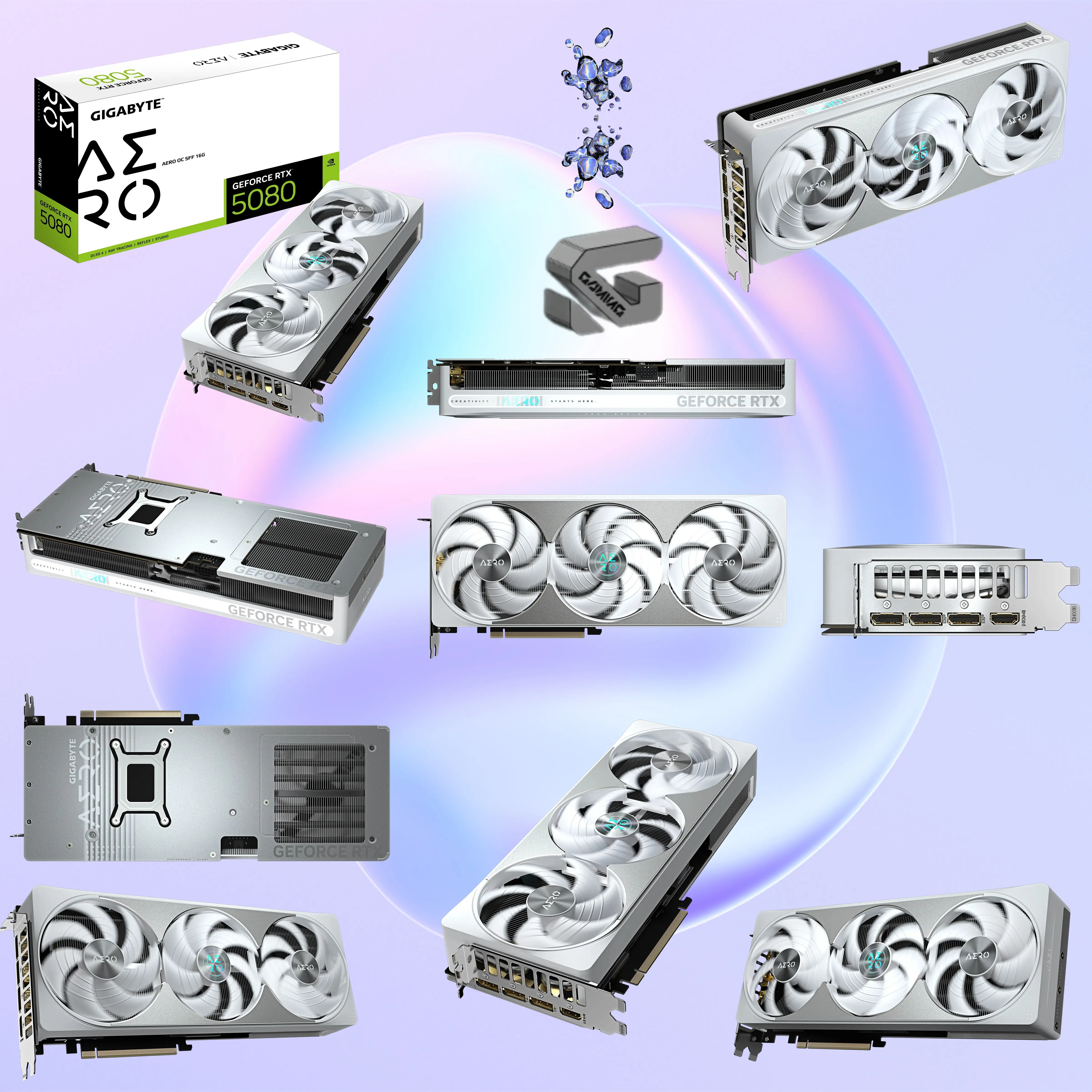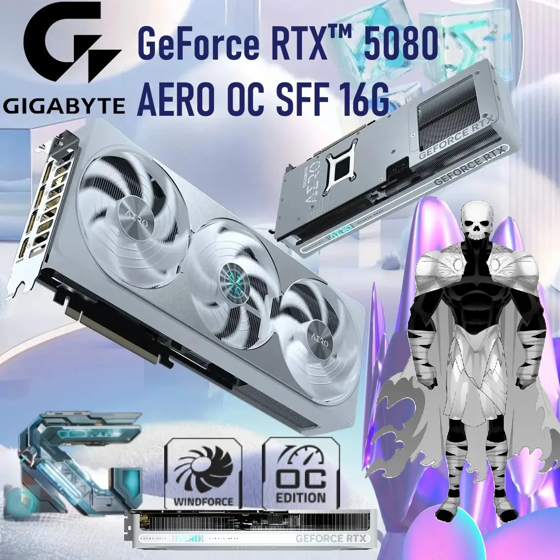 Gigabyte Aero GeForce RTX 5080 OC SFF GPU – 16GB GDDR7, DLSS 4, 256-Bit, PCIe 5.0, 2730MHz Core Clock, RGB Lighting, WINDFORCE Cooling, Dual BIOS, SFF Ready, Reinforced Frame, 3 x DisplayPort, 1 x HDMI