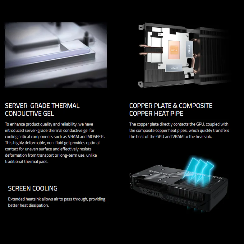 - Server-Grade Thermal Conductive Gel: Ensures consistent, high-efficiency cooling of VRAM and MOSFETs—ideal for long-term use.