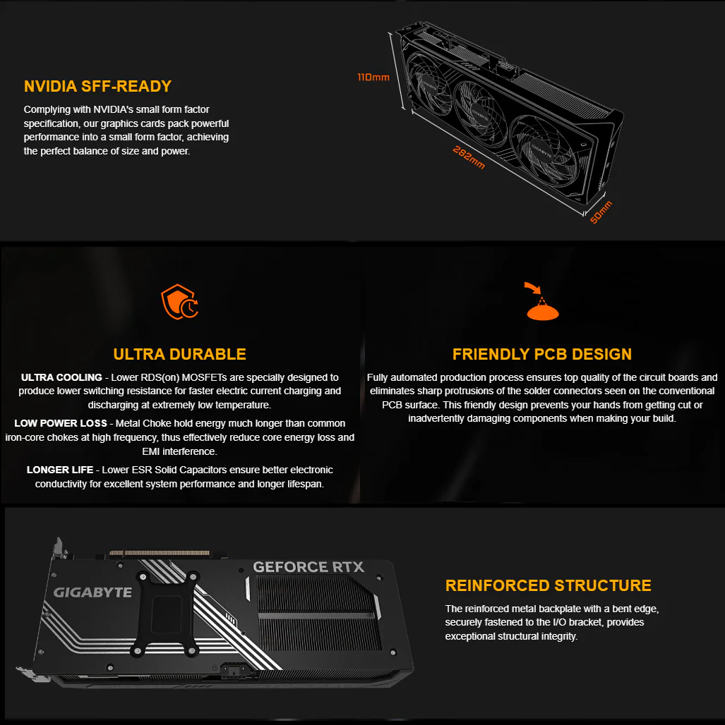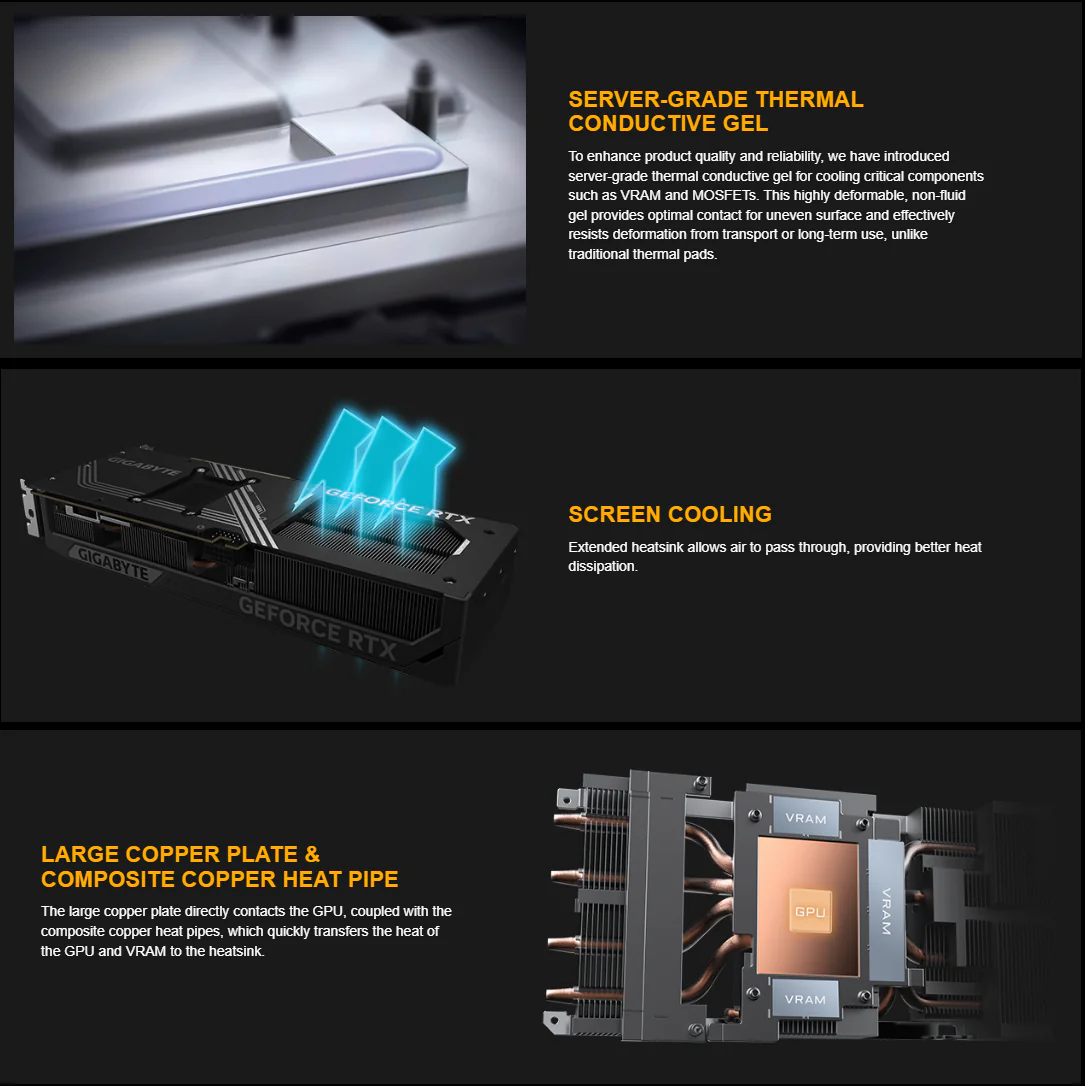 - WINDFORCE Cooling System: Keeps thermals in check with alternate spinning Hawk fans, large copper plates, composite heat pipes, and 3D active fan tech.