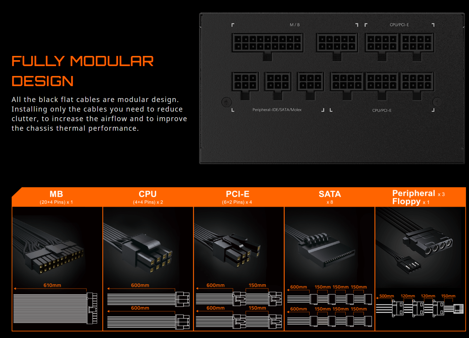 Gigabyte GP-P750GM (80 Plus Gold 750W, Modular, Smart Fan, Smart Power Protection, Power Supply)